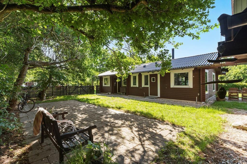 Nyd livet udenfor i den store dejlige have, der er skøn på alle årstider. Her kan I lege i haven og slappe af på terrasserne, der omkranser huset på tre sider, så solen kan følges hele dagen. Nabogrunden ved siden af er ubebygget og forbliver sådan, så der er masser af luft omkring huset. Og som prikken over i’et ligger stranden kun 600 meter væk. Det betyder, at I nemt kan tage børnene og badedyrene med til en dag fyldt med sol, sand og bølgeskvulp. Selvom det ikke er vejr til at bade, så er det skønt at gå friske ture og få "vind i håret". Ja, her er rammerne, der er skabt til en ferie fyldt med hygge, nærvær og masser af frisk luft.