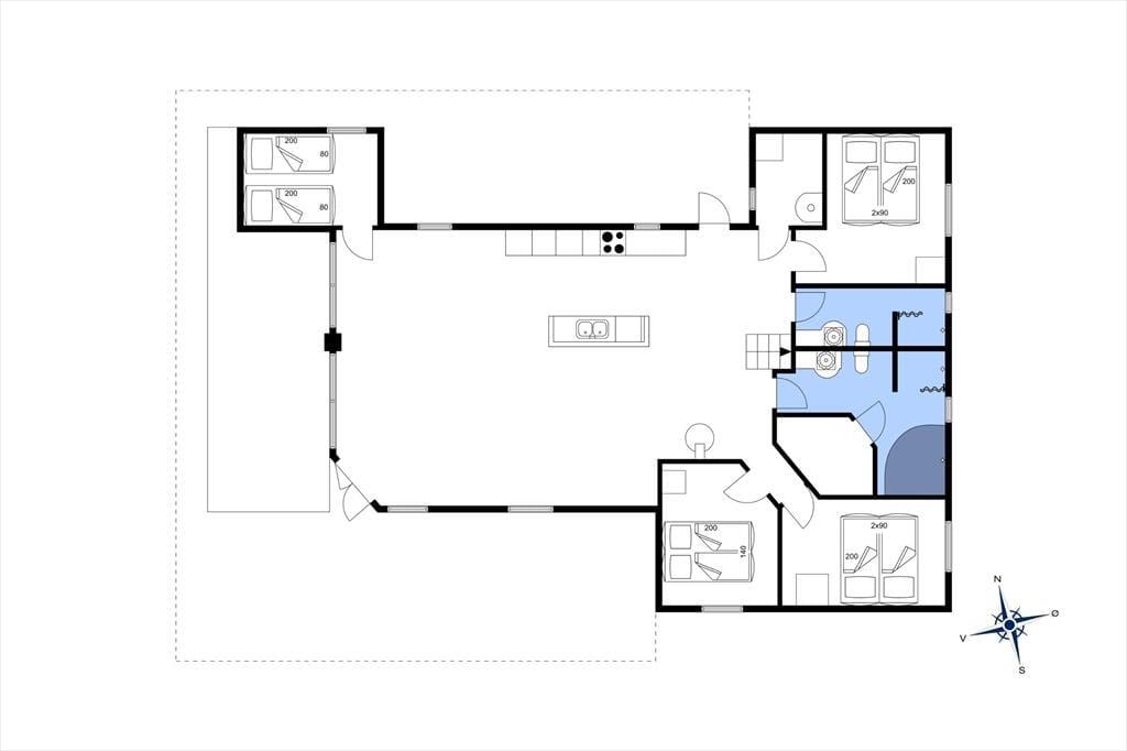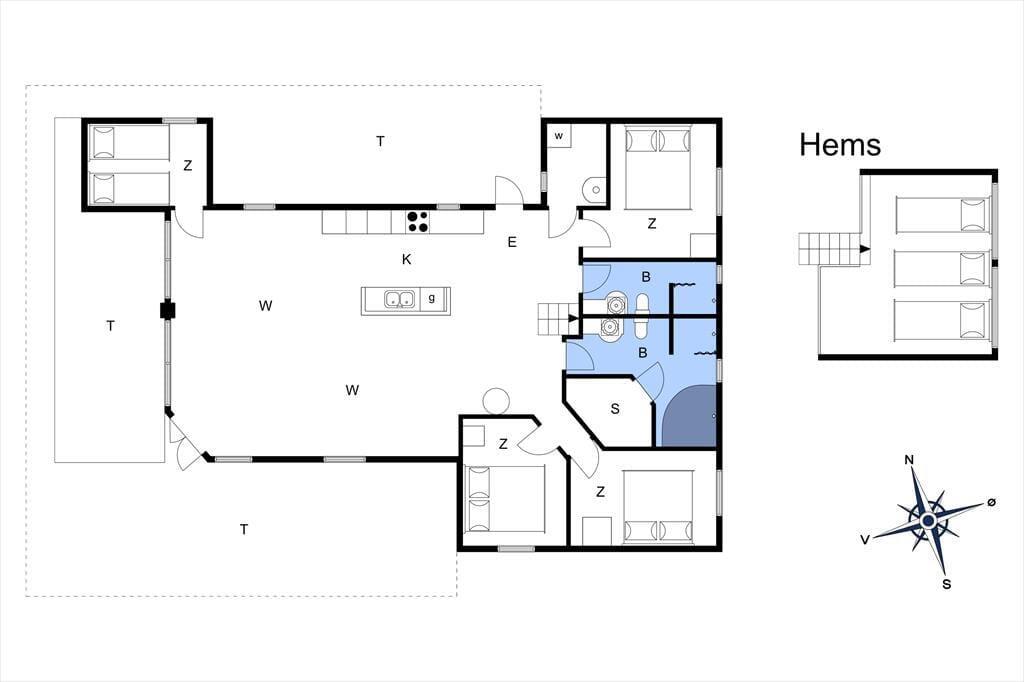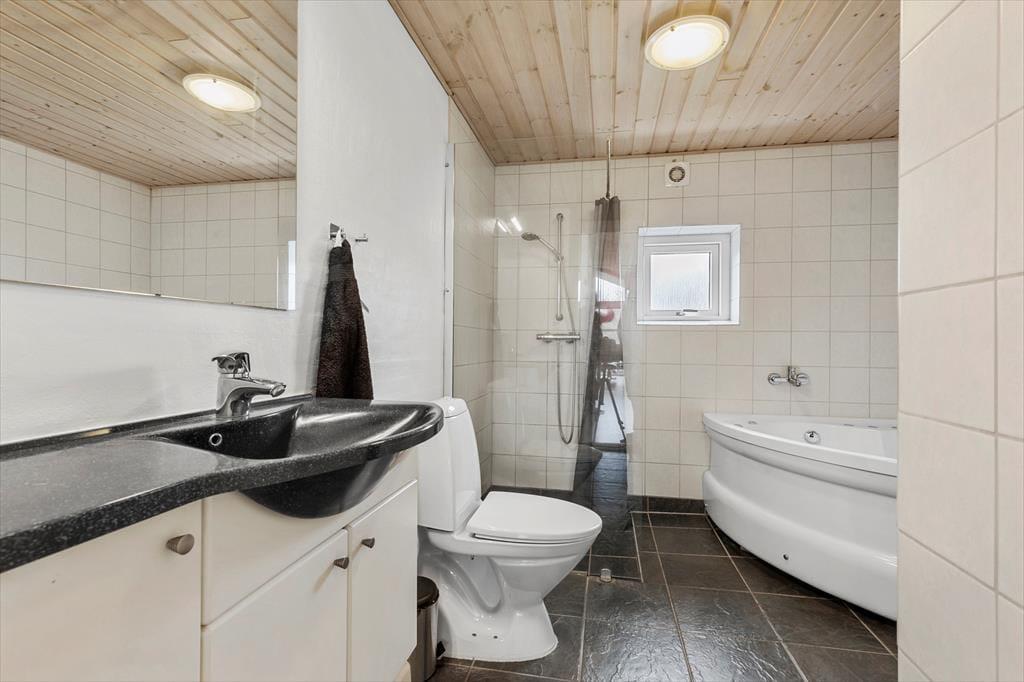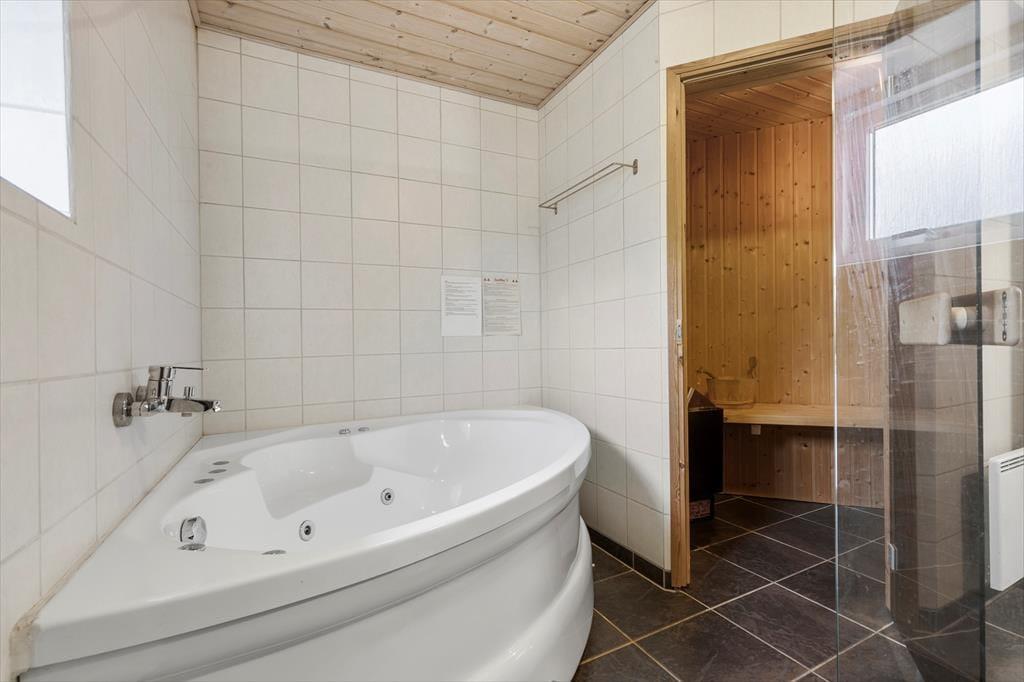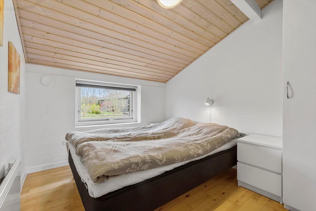 Et lyst og afslappende sommerhus, hvor der er højt til loftet og som er en god base for en ferie i nærværets tegn. Åbent køkken med halvmur til stue og spiseafdeling giver dig mulighed for at have hyggelige samtaler med familien, mens du laver lækker feriemad og nyder et godt glas vin. Du kan også følge med og heppe med dem som spiller bordfodbold i stuen. Når aftenen falder på, er det tid til en god bog eller et spil med børnene alt imens brændeovnen knitrer hyggeligt, Der er gitter til brændeovnen, så de små gæster ikke brænder sig. Fra stuen kan du gå direkte ud på den dejlige terrasse og til den dejlige have. 4 soveværelser - tre med dobbeltsenge og et med 2 enkeltsenge. De sidste sengepladser er på hemsen. 2 dejlige badeværelser - det ene med spa og sauna samt rum med vaskemaskine.