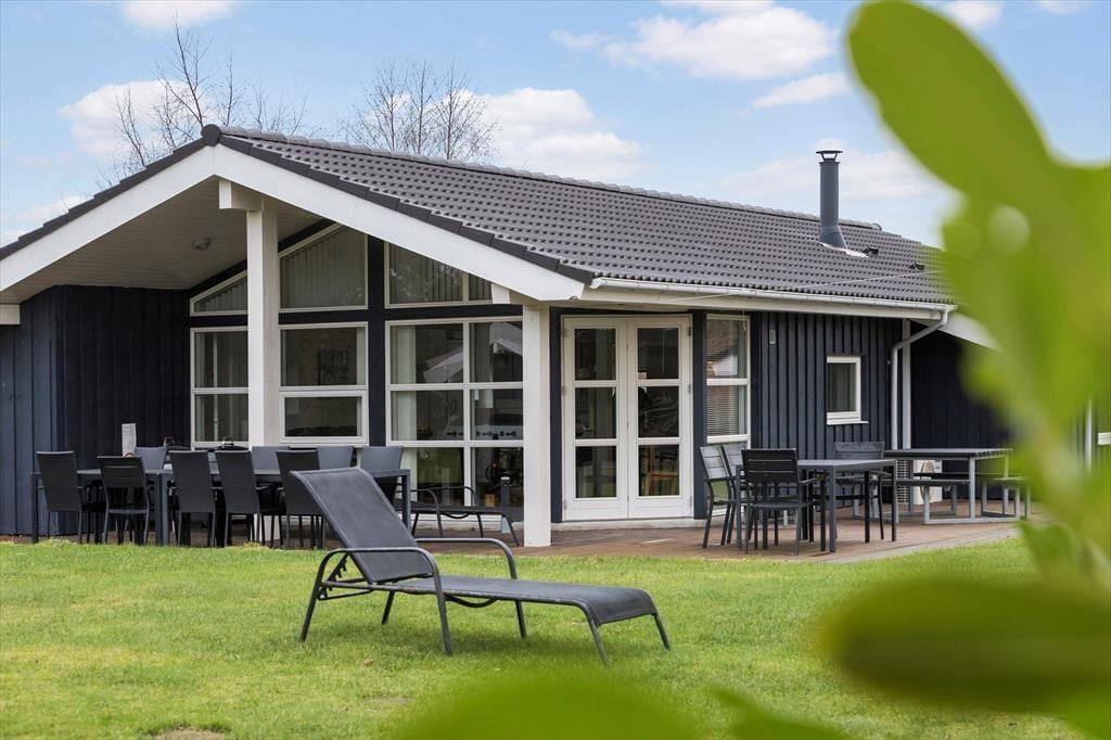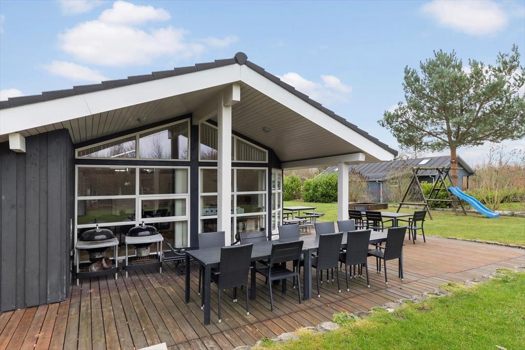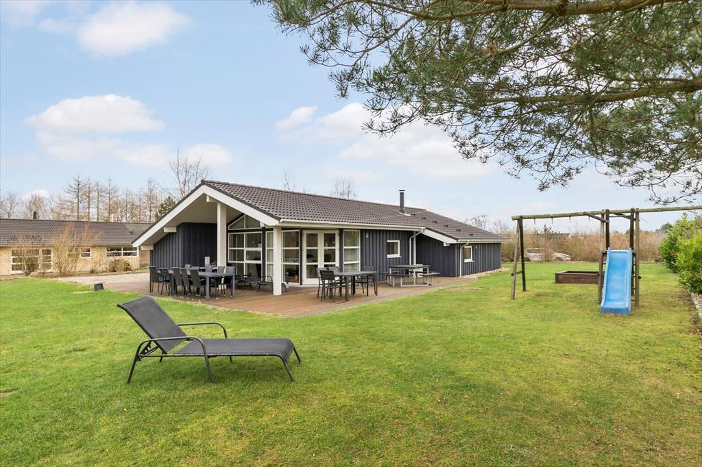 Huset er omgivet af en fin have med stor græsplæne og beplantning i skel. Den delvist overdækkede terrasse er herlig og stedet, hvor rigtig kan nyde solen, mens børnene leget på græsplænen og hviner, når de gynger. Tænd også grillen og nyd de lune sommeraftener fri fra duggen. Tag også en morgen- eller aftendukkert i "bølgen blå" blot 750 meter væk. Nyd at have morgenmad med hjem til de andre eller snup en af de berømte isvafler.