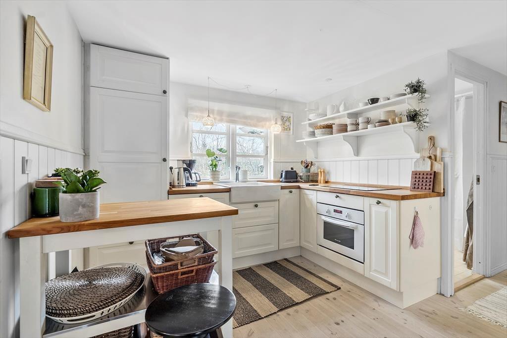 til dette charmerende og stilfulde ferieparadis – et smukt indrettet sommerhus, hvor roen sænker sig, og feriestemningen mærkes fra første øjeblik. Her får du en klassisk perle, hvor moderne komfort møder den ægte danske sommerhusstemning. Med lyse trævægge, store sprossede vinduer og en indretning i nordiske nuancer skaber huset en varm og indbydende atmosfære. Bløde tekstiler, velvalgte møbler i hyggelig sommerhusstil og små detaljer fra kystens naturlige farver fuldender oplevelsen.