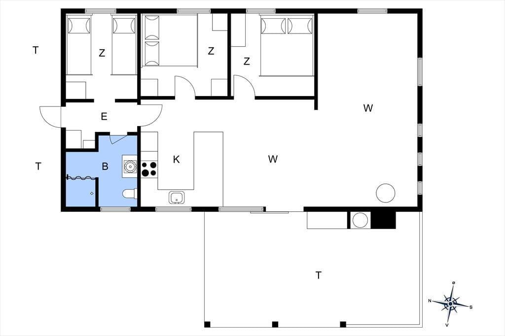 Huset har tre soveværelser - To med dobbeltsenge, der er perfekte til en god nats søvn efter en aktiv dag, og et med to enkeltsenge, som er ideelt for børn eller venner. Badeværelset er praktisk med en bruser, der hurtigt giver dig den forfriskning, du har brug for, før du tager på nye eventyr.