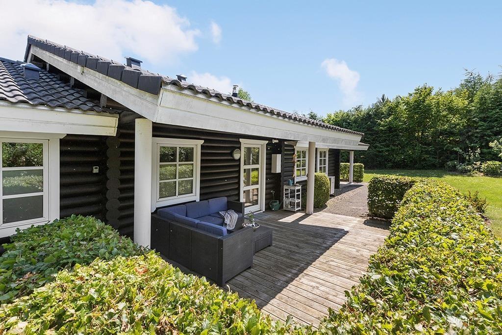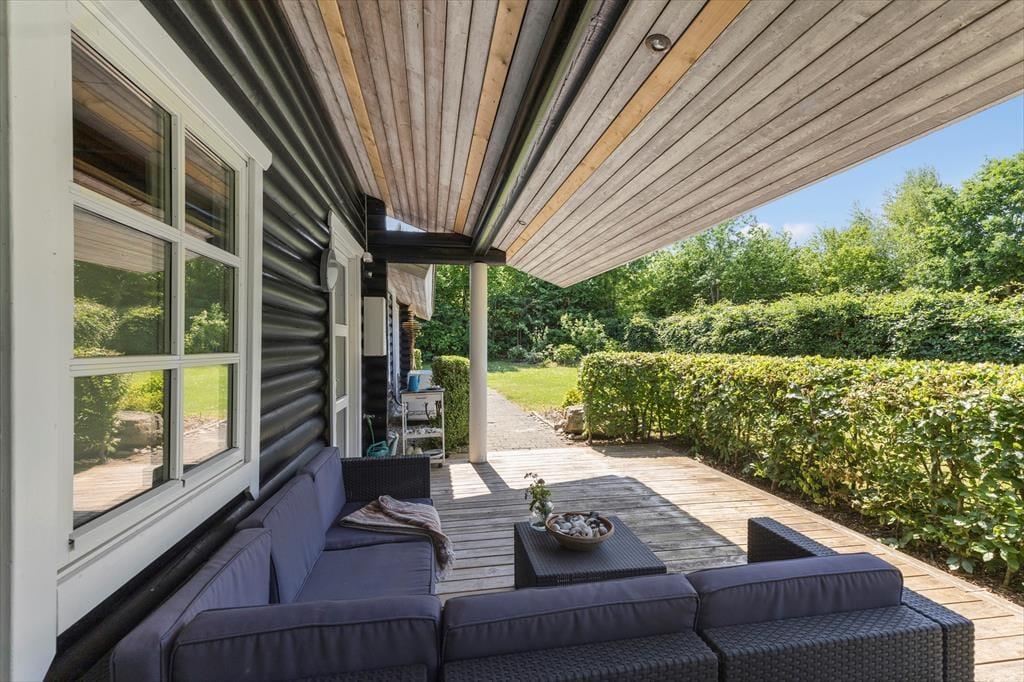 Udenfor venter en sand ferieoase. De skønne terrasser snor sig omkring næsten hele huset, og med masser af overdækkede kroge kan du finde læ for både sol og sommerregn – uden at gå glip af dagens lys og varme. Haven er en grøn og ugeneret perle, velplejet og med masser af plads til både leg og afslapning. Den er delvist lukket og tryg at opholde sig i – og her er tænkt på det hele. Fra hyggelige lækroge og blomstrende buske til legetårn, sandkasse og en spændende hule, der bare venter på, at børnene bygger videre på den. Det er et sted, hvor både børn og voksne kan finde ro, eventyr og nærvær – og hvor ferieøjeblikkene får lov at trække vejret helt ned i maven.