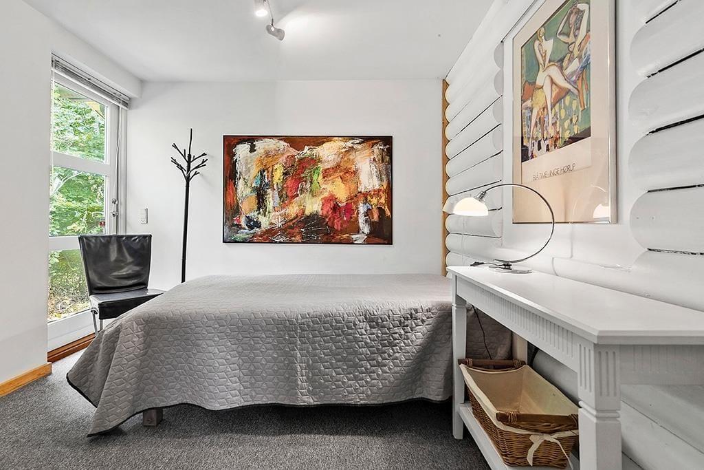 De sprossede vinduer, de smukke lofter til kip og den rummelige indretning giver en skøn følelse af luft og lys.