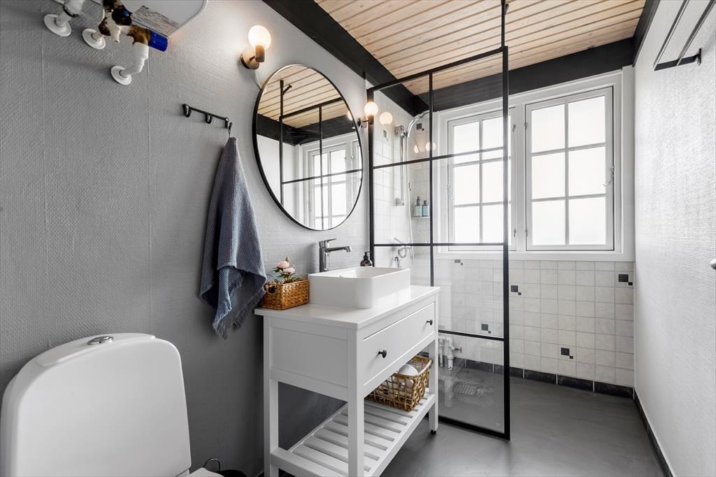 Indenfor åbner et stort, lyst opholdsrum sig med stue, køkken og spiseplads i ét. Her er plads til lange, dovne morgener med duft af nybrygget kaffe og varme rundstykker, mens lyset strømmer ind gennem vinduerne. Fra køkkenet fører en dør direkte ud til en lille køkkenhave, hvor du kan hente friske krydderurter til aftensmaden. Og fra stuen går endnu en dør ud til solterrassen – et af mange små åndehuller, der tilsammen danner et stort og hyggeligt terrasseområde, der bugter sig næsten hele vejen rundt om huset.