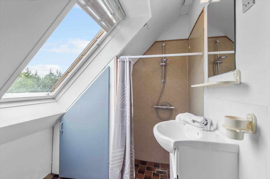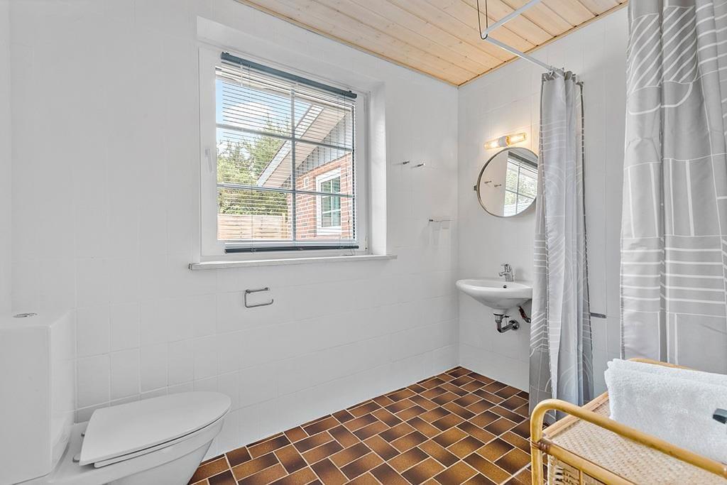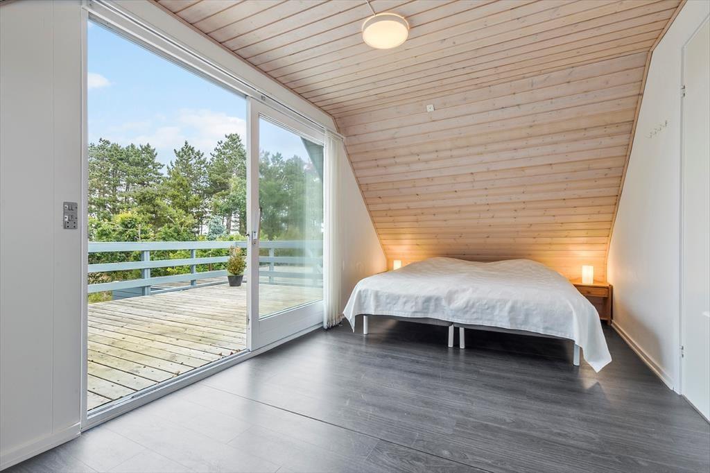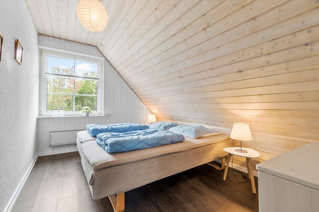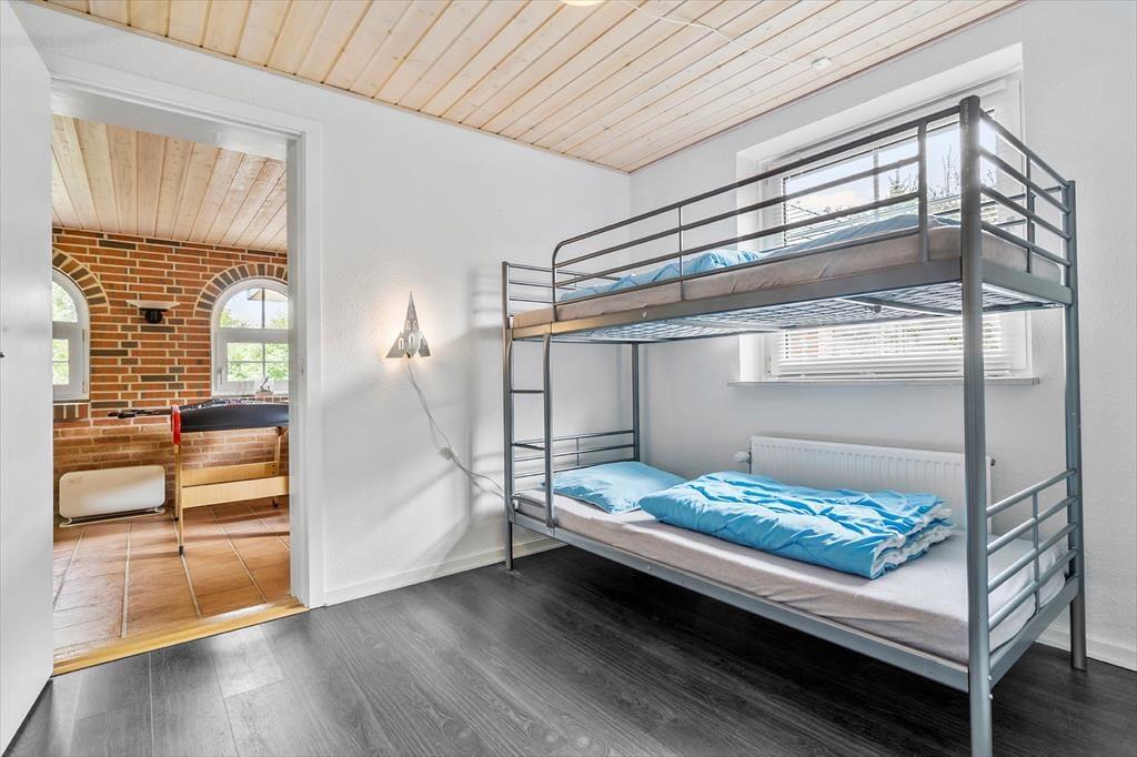 Der er fem soveværelser i huset – tre med dobbeltsenge på første sal og to i stueplan, hvoraf det ene har dobbeltseng og det andet en køjeseng. Med badeværelser på begge etager er det nemt at være flere afsted – hvad enten det er med storfamilien, vennepar eller på tværs af generationer.