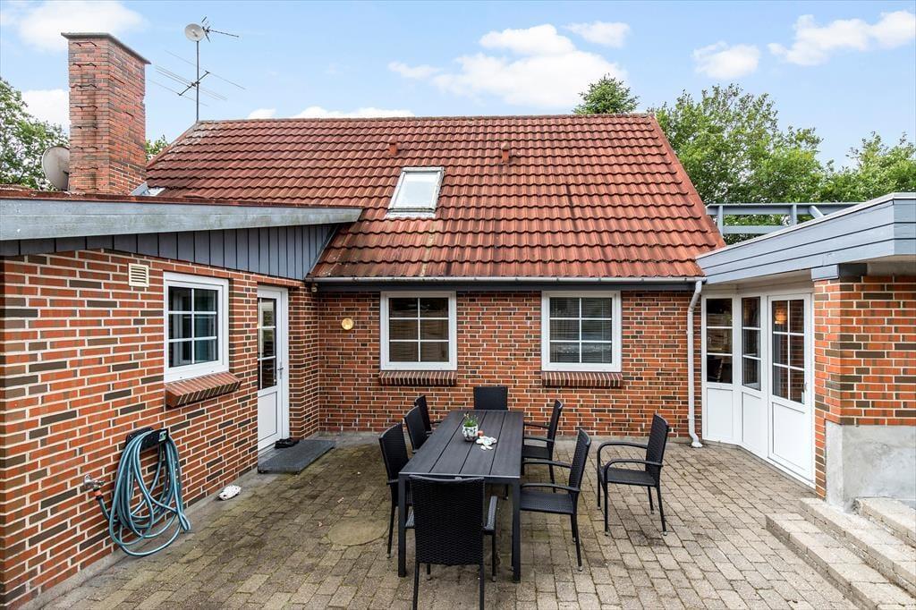 I et fredeligt hjørne af haven finder I liggestole, hvor I kan nyde stilheden med en god bog eller en lille lur i solen. Og fra det store soveværelse på første sal er der direkte udgang til en rummelig træterrasse med loungemøbler – det perfekte sted til morgenkaffen, en rolig stund i solen eller et glas vin i aftenskæret.