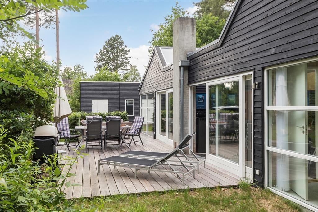 På den skønne grund folder feriestemningen sig for alvor ud. Her er masser af plads til både afslapning og aktivitet: Glæd dig til en stor, grøn græsplæne til boldspil og bare tæer, indbydende loungemøbler under store parasoller, duftende grillmad på terrassen og lange, lune sommeraftener, hvor latteren hænger i luften. Når mørket falder på, kan du riste skumfiduser over bålet, nyde solnedgangens smukke farver på himlen og lyden af ferie.