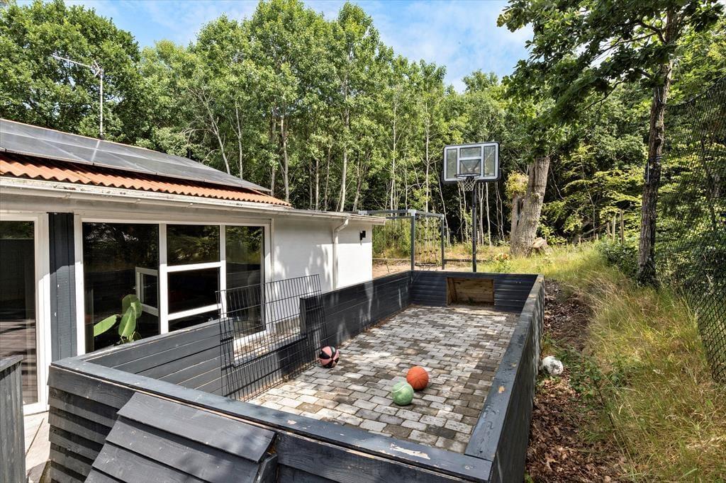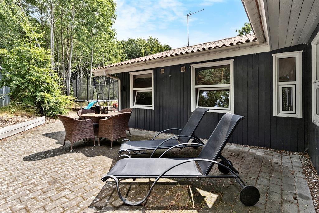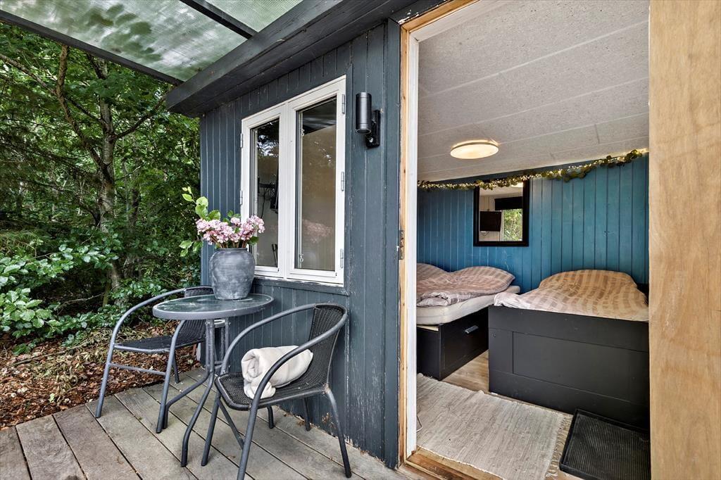 Udenfor folder ferielivet sig ud i fuldt flor. Foran huset finder du en solrig terrasse og en hyggelig bålplads, hvor duften af snobrød og lyden af knitrende ild skaber den perfekte ramme om aftenstunden. Langs siden af huset ligger en rummelig og delvist overdækket grillterrasse – et oplagt sted til lange måltider under åben himmel, uanset vejret.