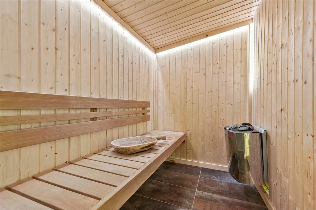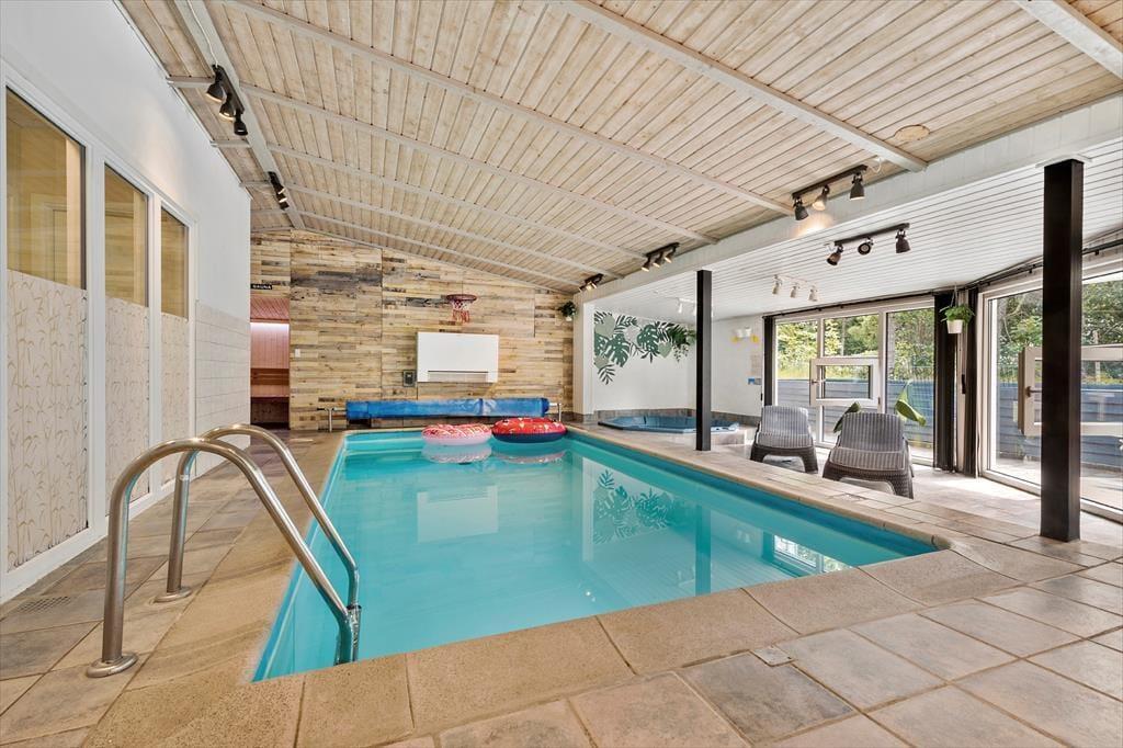 Indenfor venter det indbydende pool rum, som hurtigt bliver familiens naturlige samlingspunkt. Her kan både børn og voksne plaske, lege og hygge sig i swimmingpoolen, slappe af i spaen, læne sig tilbage på en liggestol – eller nyde varmen i husets helt nye sauna. Fra opholdsrummet har du direkte udsyn til pool området, så du nemt kan følge med i børnenes vandleg, mens du nyder en kop kaffe eller slapper af i sofaen.