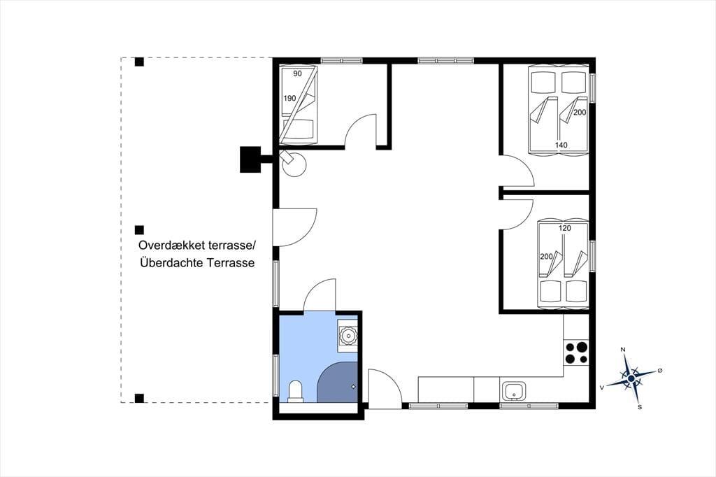 Et almindeligt, ældre og enkelt træsommerhus fra 1969, der er gjort noget ved under vejs med f.eks. nyere køkken og bad. Køkken er i åben forbindelse med alrum og stue, hvorfra der er brændeovn og udgang til overdækket terrasse og haven samt 3 soverum - et med dobbeltseng 140x200, et med enkeltseng 120x200 samt et køjeværelse til børn. Møblerne er af ændre dato, og der er lagt op til en ferie for familien, der ønsker at holde ferie på den autentiske måde og ikke går så meget op i stilrenhed. Annekset bruges ikke til udlejning.
