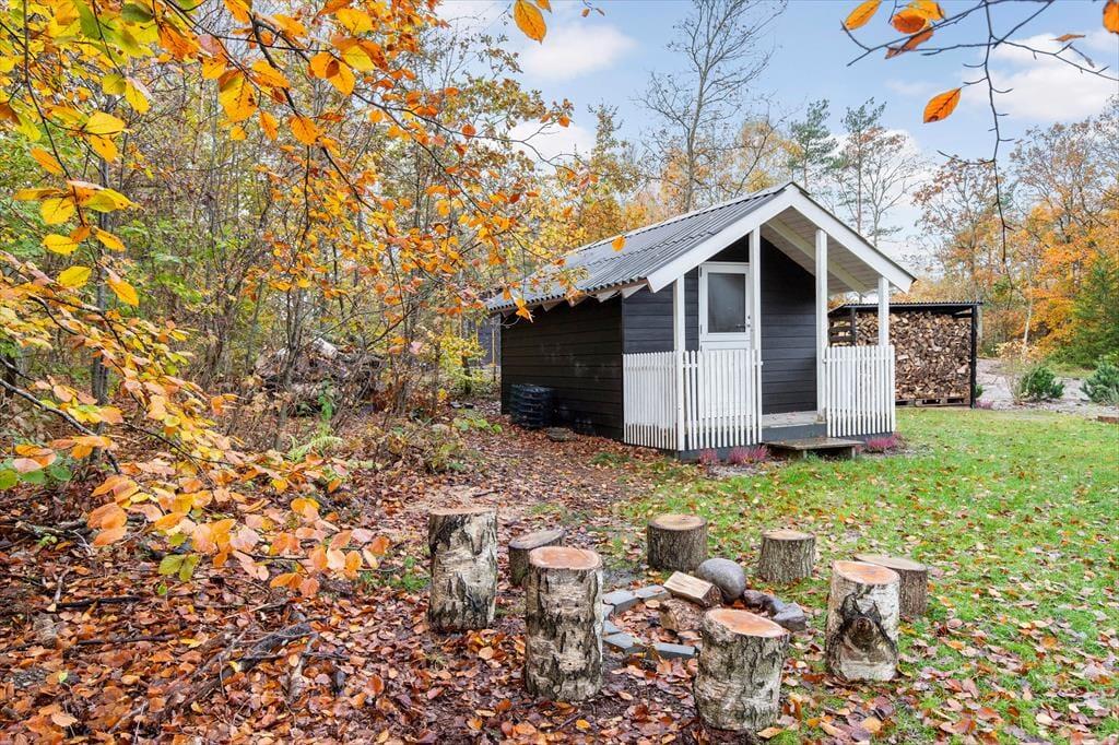 Det hele ligger på en skøn natur- og skovgrund for enden af en lukket vej. Her er trygt for børn at lege og nemt for alle at finde fred fra hverdagens tempo. En lille gangsti fører jer direkte mod kysten, og på bare få minutter står I ved den dejlige badestrand 250 meter væk, klar til morgendyp, sandslotte eller friske gåture i vandkanten.