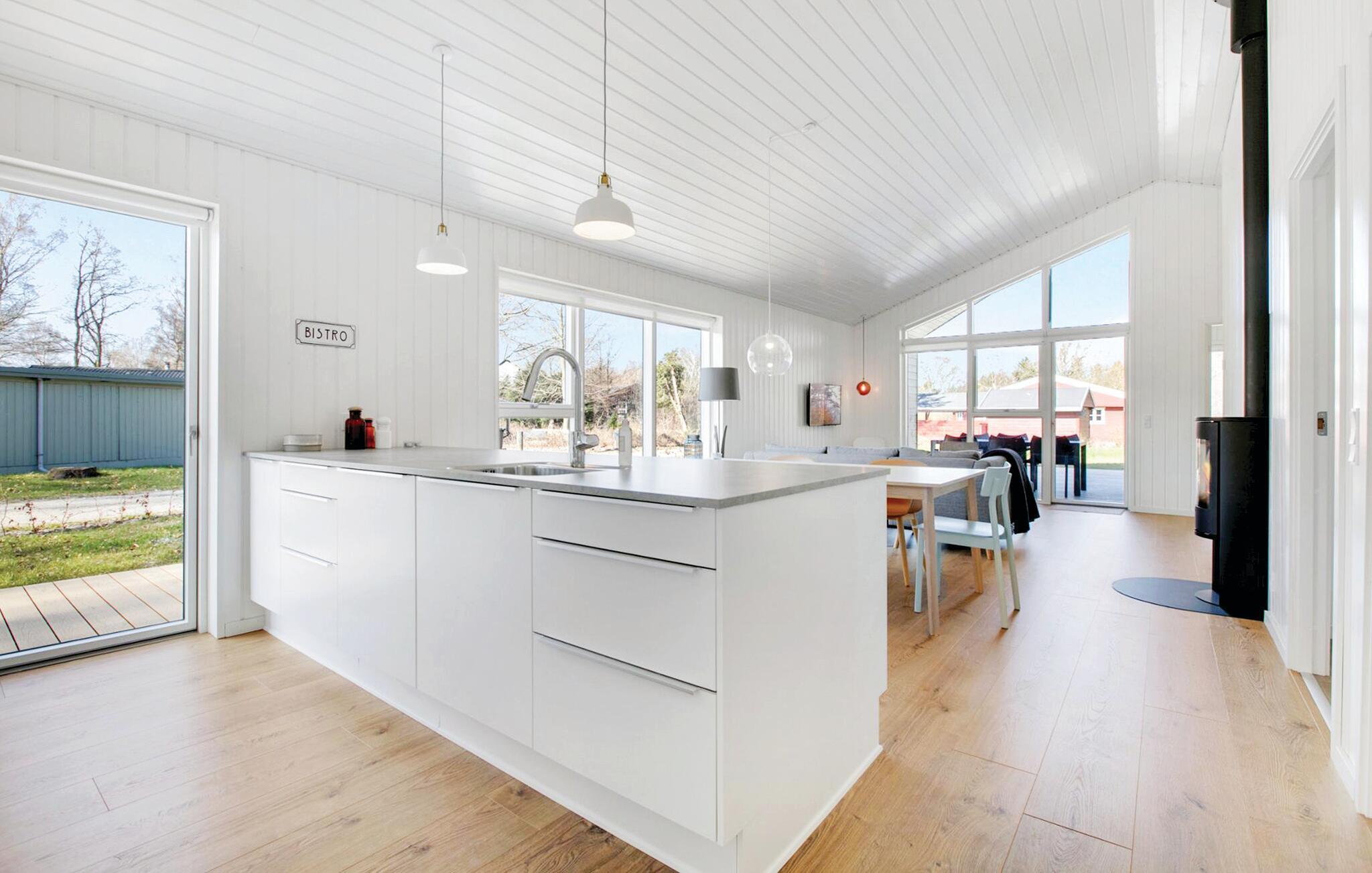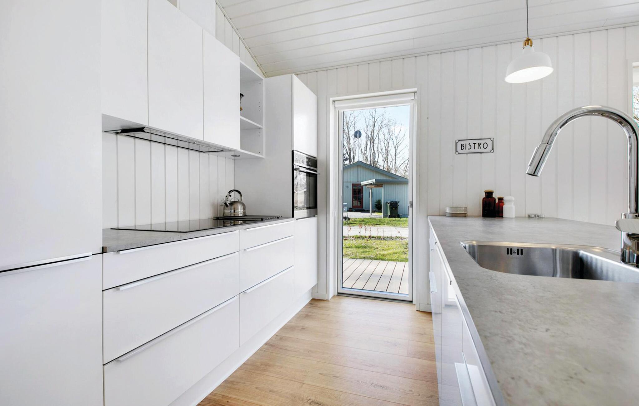 I det gamle kvarter i Fjellerup ligger dette flotte sommerhus på en dejlig grund med græsplæne. Huset er moderne indrettet med gode soveværelser og senge samt et fint badeværelse med badekar og sauna. Her findes desuden også et gæstetoilet. Køkkenet ligger i forbindelse med stuen og har udgang til terrassen.