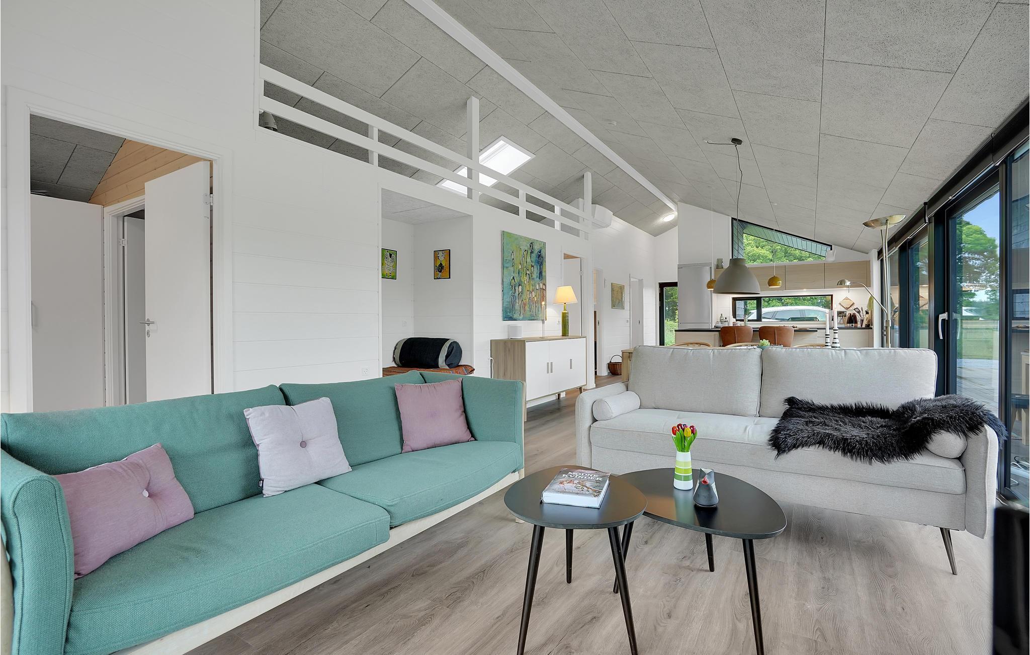 Det moderne træhus er ideelt til 7 personer med et kæledyr, for eksempel en gruppe venner eller en stor familie, der ønsker at holde en afslappende ferie på Djursland sammen. I kommer ind i en åben stue, som er udstyret med store vinduespartier og frem for alt komfortabelt indrettet. På den åbne og delvist overdækkede terrasse med havemøbler kan I samles om en afslappende middag eller nyde en lækker morgenmad, mens I planlægger dagens aktiviteter.
