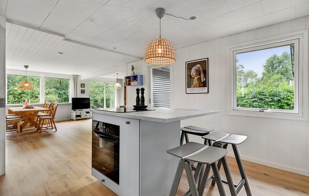 Hold en afslappende ferie med familien tæt på hyggelige Fjellerup Strand i dette vidunderlige sommerhus, som er lyst og elegant indrettet.