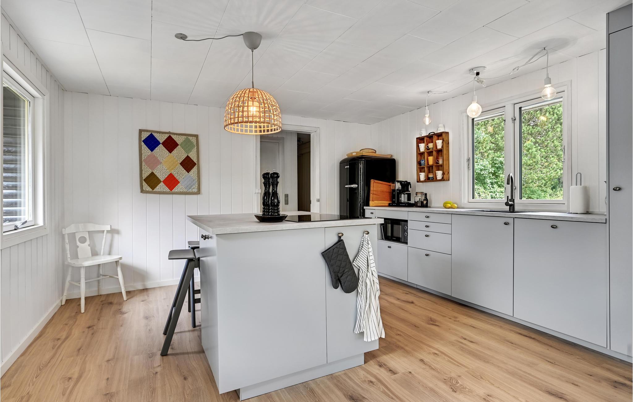Der er lagt op til nogle skønne dage på Norddjurs, hvor I kan gøre dette dejlige hus til jeres base. Sammensæt dagens måltider rundt om den moderne kogeø og dæk op på en af de fine terrasser udendørs, når solen er fremme. I haven er der gode rammer til, at børnene kan boltre sig, for grunden emmer af plads, lys og luft.