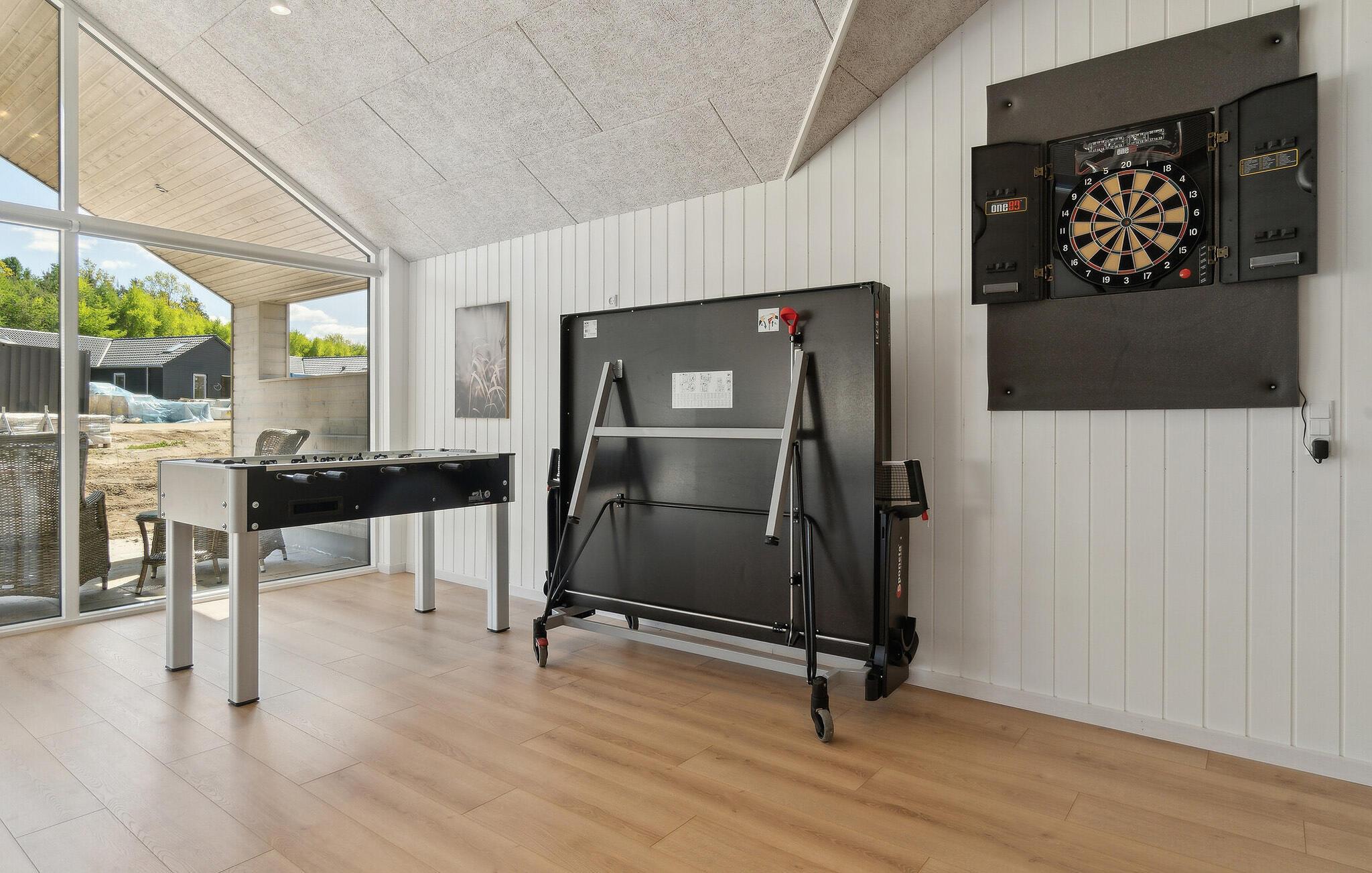 Dette lyse og indbydende hus har alt, hvad I skal bruge til en skøn familieferie. Her kan alle aldersgrupper nemlig finde noget sjovt at fylde dagene med. Tilbring sjove timer i poolen og læn jer tilbage i saunaen. Glæd jer til hyggelige aftener efter dagens eventyr. Slå jer ned ved spisebordet, ryd bordet til brætspil og fyld aftentimerne med gode snakke.