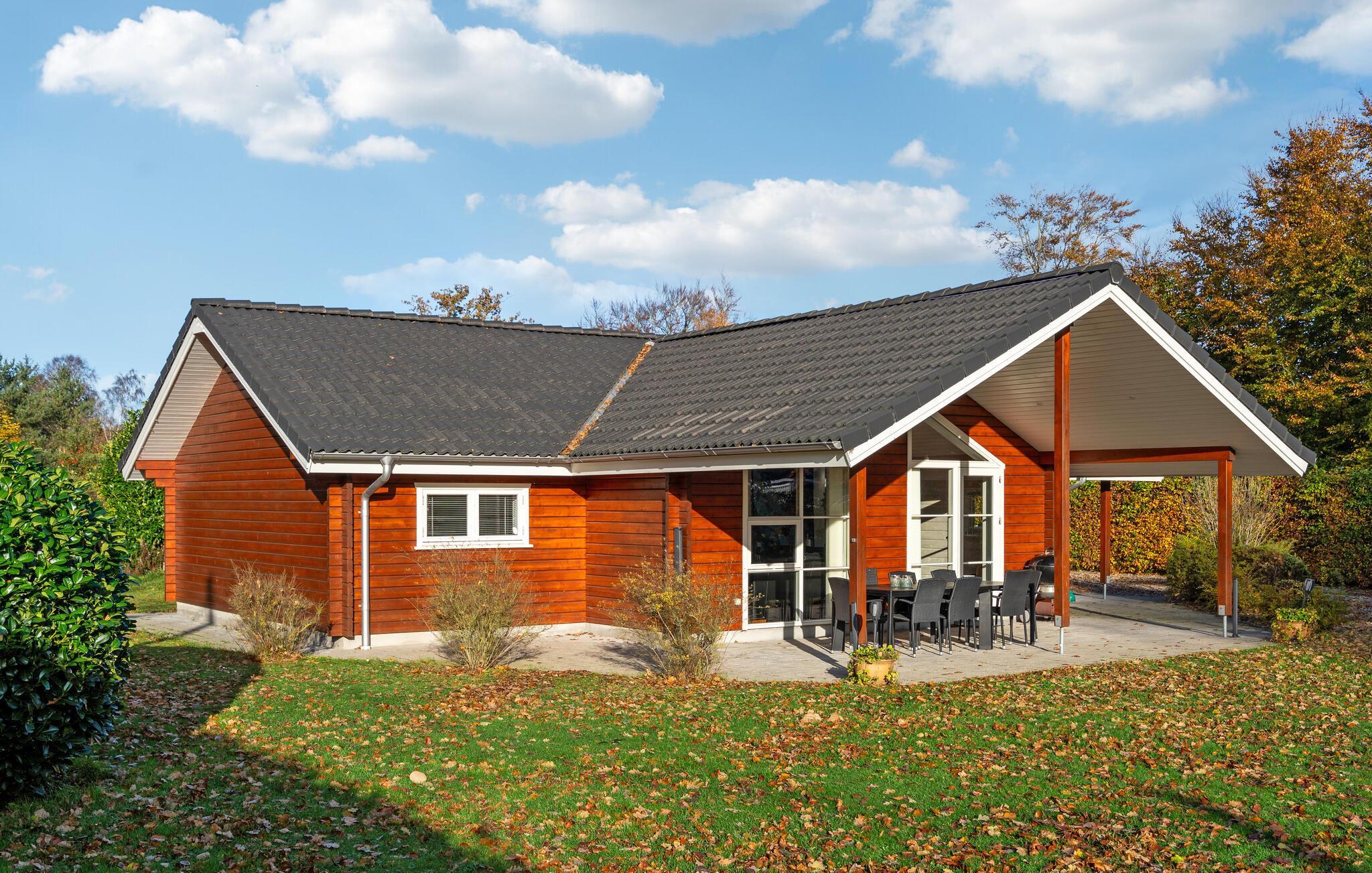 Årets familieferie venter jer i dette skønne træhus med en dejlig have ved Fjellerup Strand.