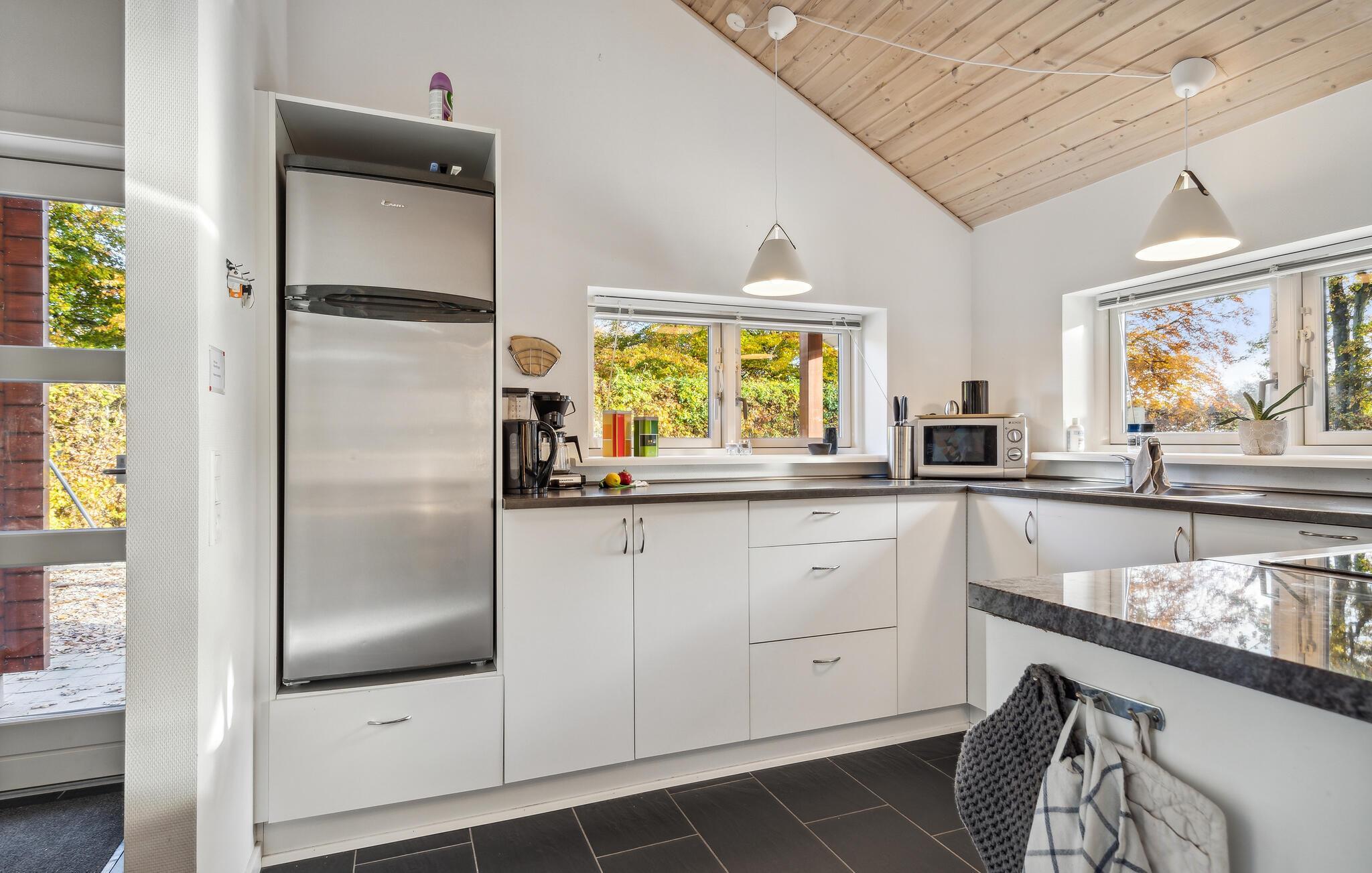 Velkommen til dette indbydende og hyggelige hus, der danner rammen om nogle vidunderlige uger på nordsiden af Djursland. Fordel jer ud i soveværelserne og på hemsen, inden I mødes i det åbne opholdsrum til mange hyggelige stunder. Indretningen fremtræder virkelig nydeligt med højt til loftet, varme træpaneler og et lækkert lysindfald, der gør det nemt at sænke skuldrene og slappe af. Lad amatørkokkene kræse om madlavningen i det veludstyrede køkken, mens andre lægger puslespil ved spisebordet eller læser en god bog. Efter aftensmaden kan I hive brætspillene frem eller rykke over i sofaen med lækre snacks og en god film på tv'et.