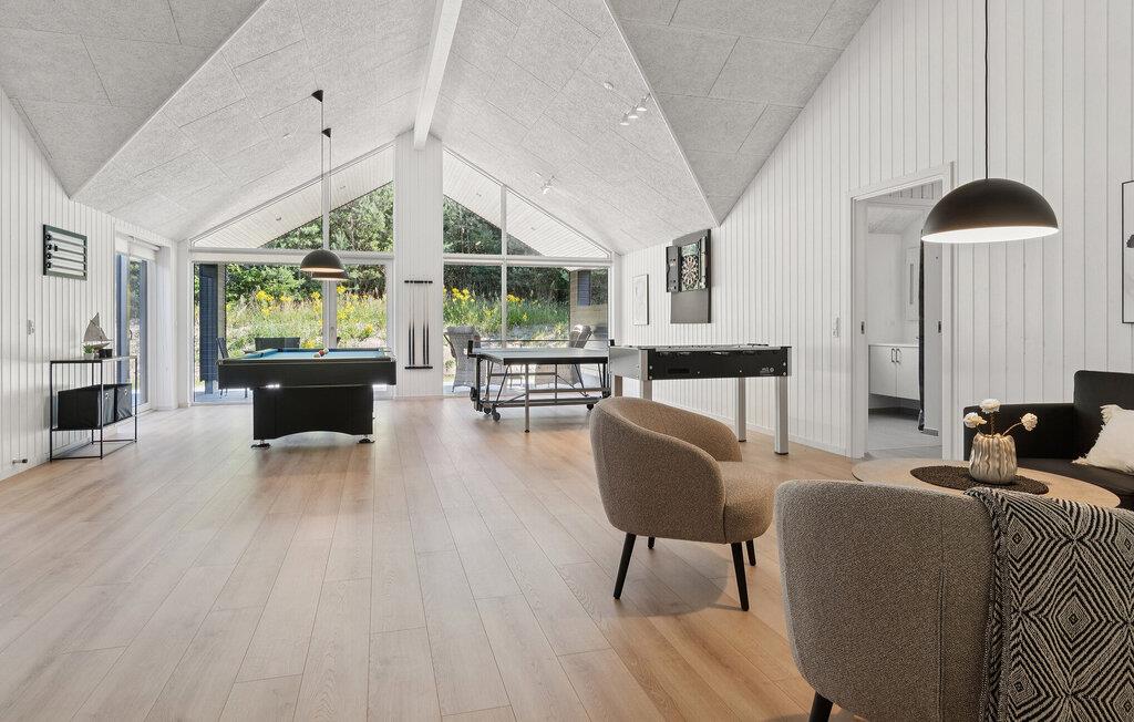 Nyd et lyst feriehus i Fjellerup med indendørs pool, sauna og aktiviteter tæt på stranden.