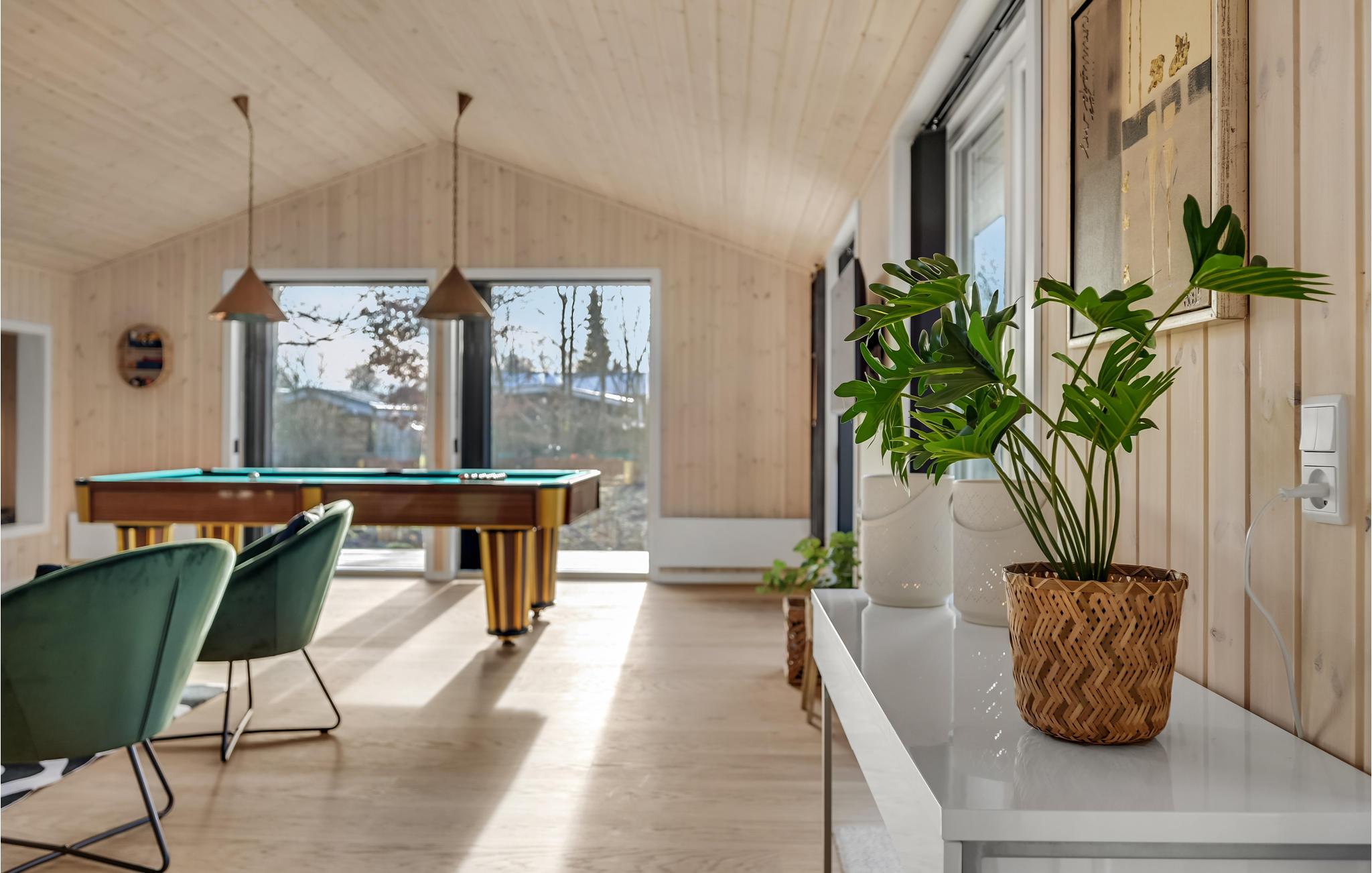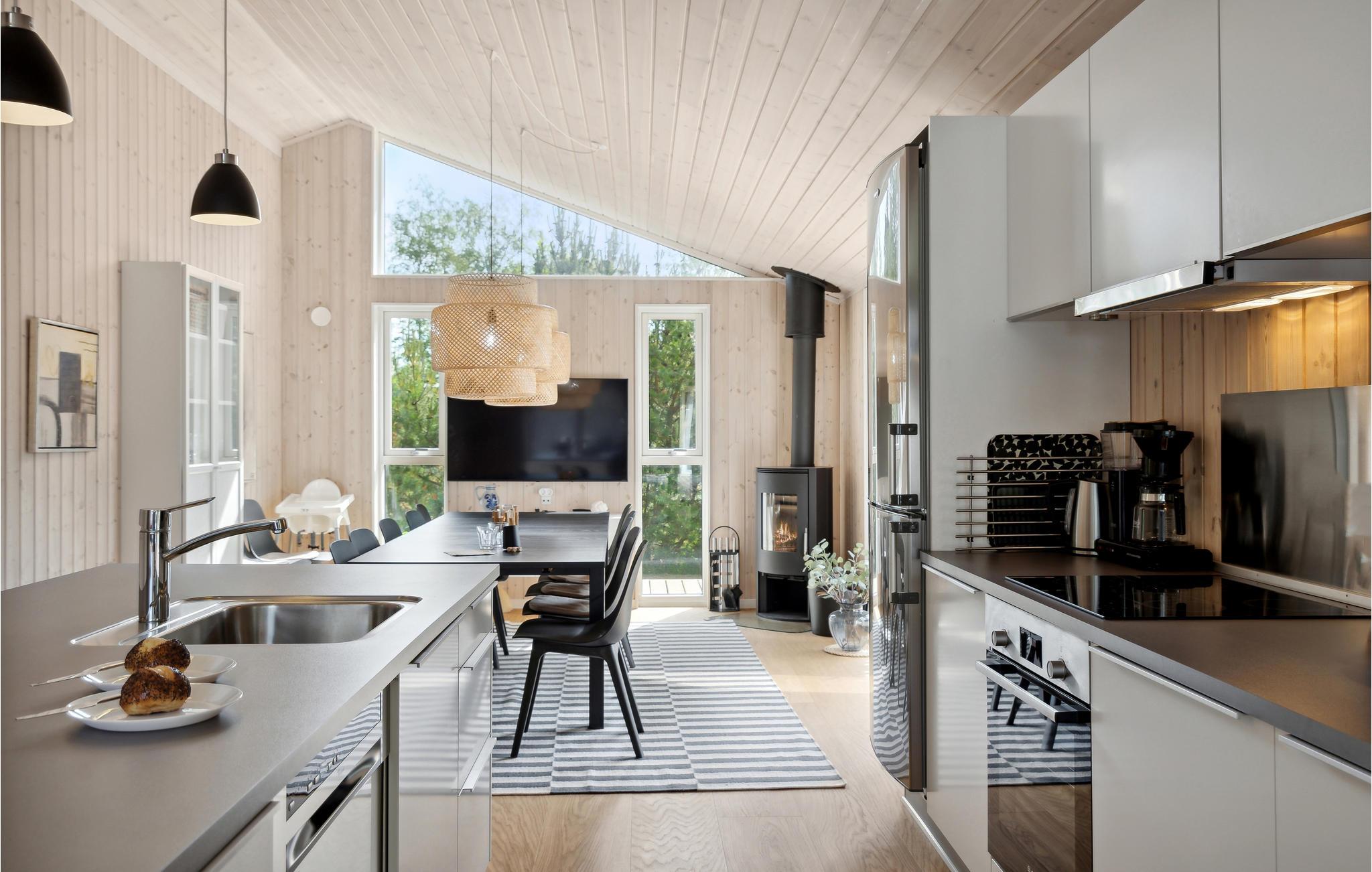 Der er gode rammer til hele familien i dette hus ved Fjellerup Strand, hvor I får godt med plads og kort afstand til vandet. Huset har en lys, åben og behagelig indretning, som gør det nemt for alle at finde en god måde at slappe af på. Sæt jer til rette i alkoven, læn jer tilbage i sofaen eller snup et spil billard, mens I lytter til de knitrende flammer i brændeovnen. Køkkenet er godt integreret i opholdsrummet, så I kan nyde hinandens selskab, mens aftensmaden bliver gjort klar.