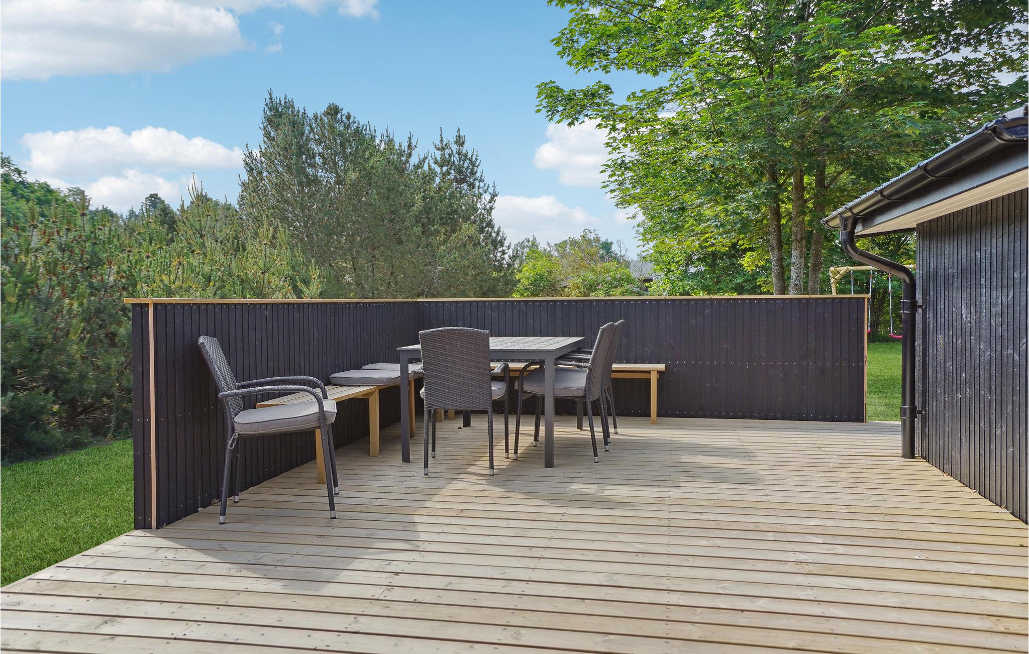 På de solrige dage er det skønt at rykke ud på terrassen og se børnene hygge sig med gyngerne og sandkassen. Tænd op i grillen og lad duften brede sig, mens I dækker op til den store sommermiddag udendørs. Det føles ekstra luksuiøst at sætte sig til rette i vildmarksbadet efter en lang dag på farten.