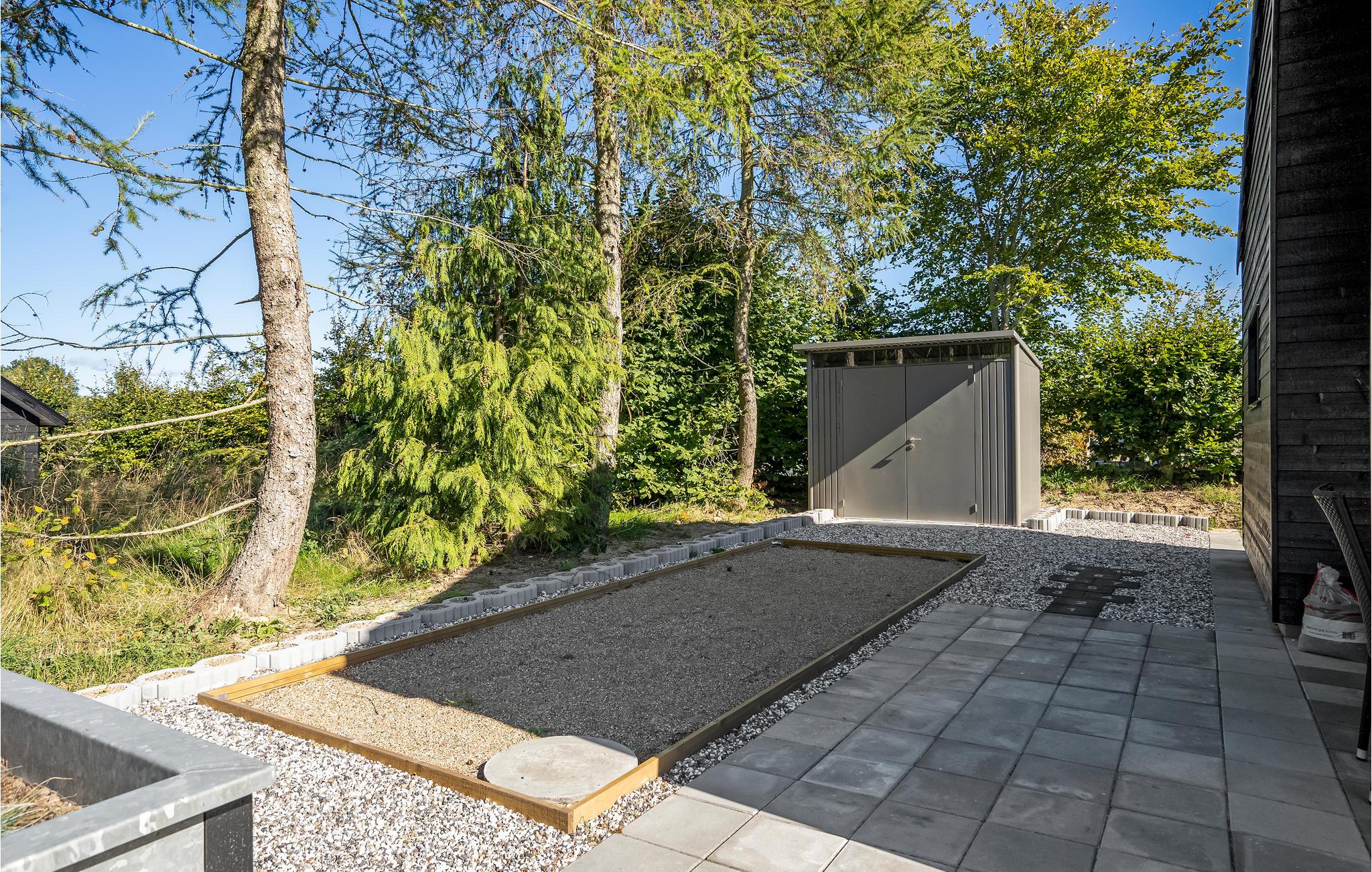 Fra stuen er der adgang til terrassen, hvor I kan nyde morgenkaffen i sol eller skygge, mens børnene slår sig løs i haven, hvor der er gode legemuligheder. Vil I sætte trumf på afslapningen, er der et spabad til at massere de trætte muskler samt en tøndesauna og liggestole. Med et enkelt tryk fyldes spabadet op og er klar under hele jeres ophold.