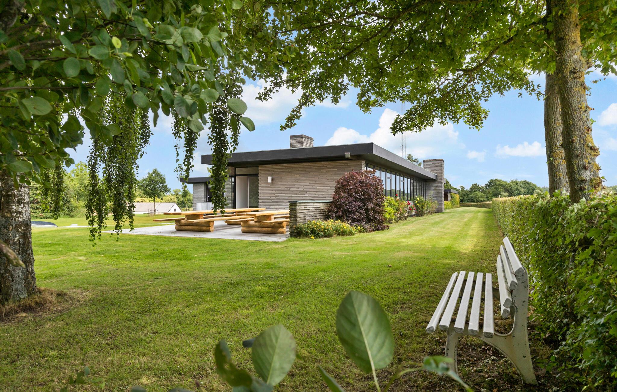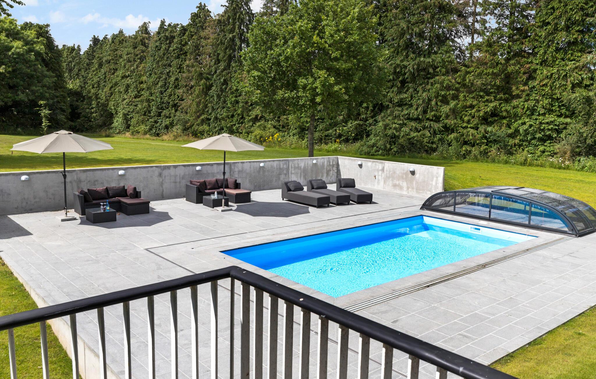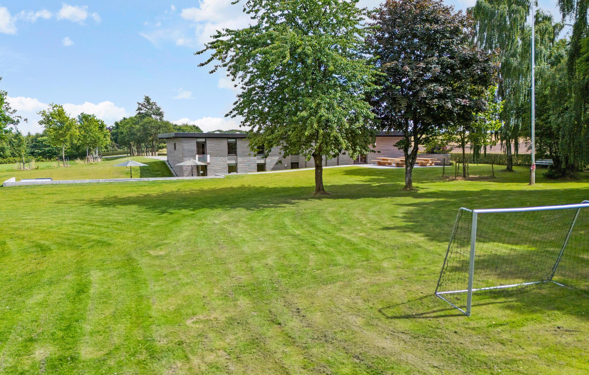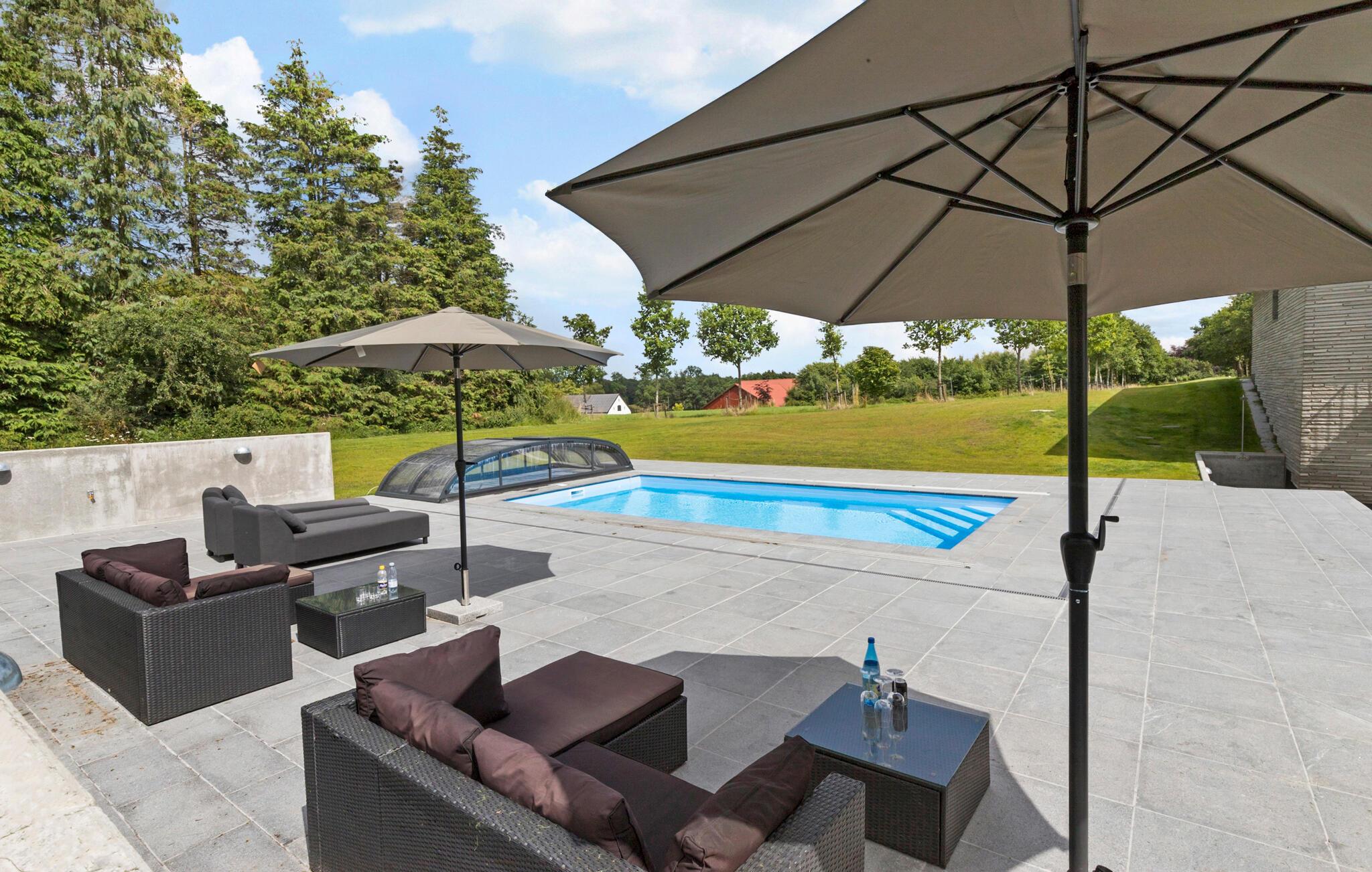 Stort feriehus med opvarmet pool, aktivitetsrum og stor have nær Fjellerup for hele familien.