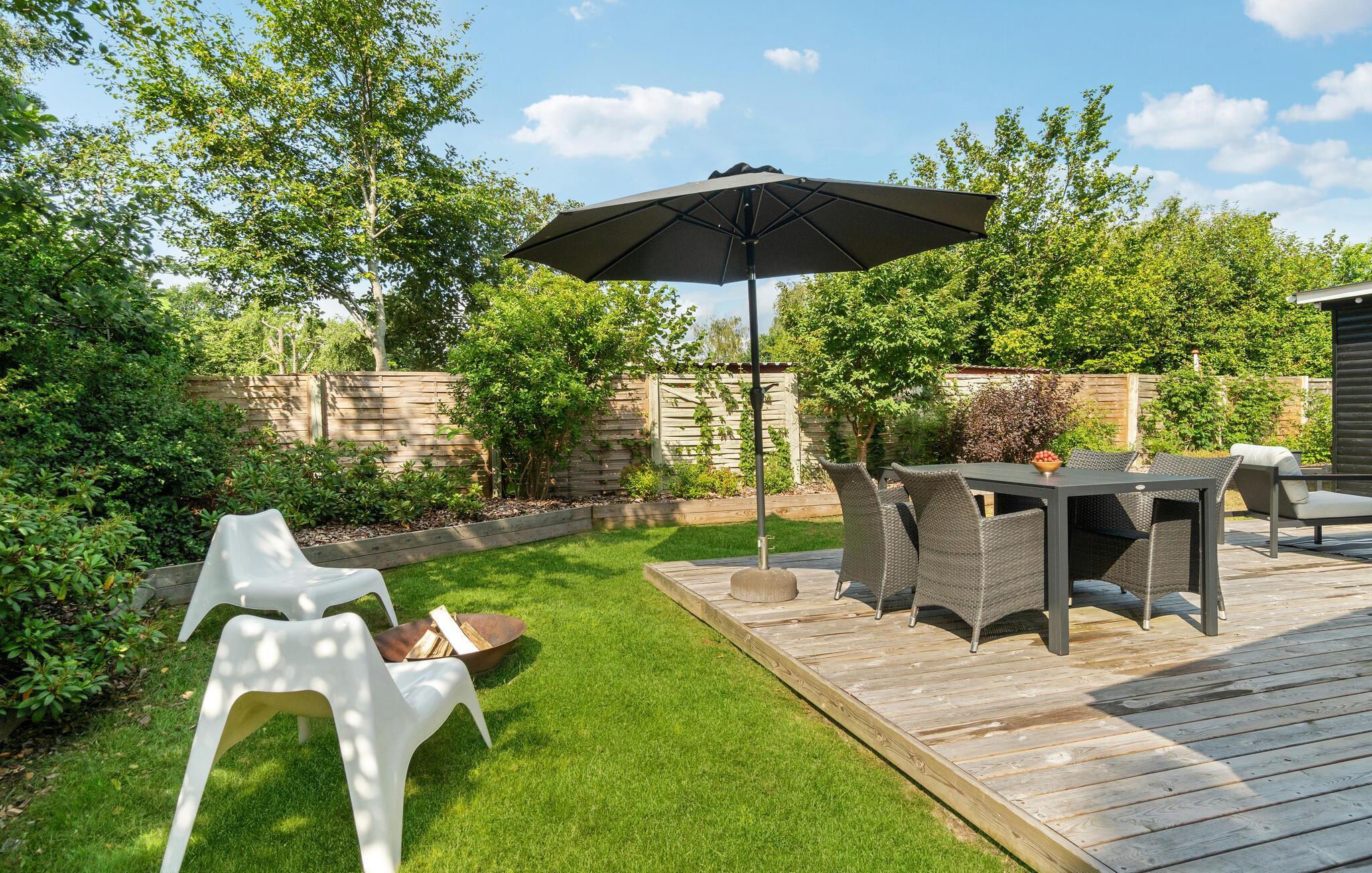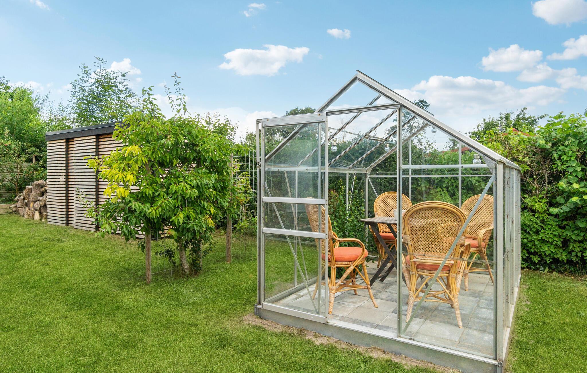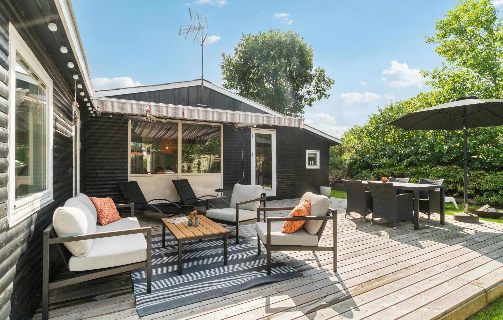 Velkommen til dette flotte feriehus, der danner om en fantastisk ferie tæt på smuk natur og den skønne strand. Indretningen fremstår lys, komfortabel og hyggelig med de tydelige træpaneler i varme farver, og hele huset emmer simpelthen af hygge. Køkkenet er veludstyret, så amatørkokkene kan folde sig ud og tage sig god tid til at sammensætte familiens livretter. Måltiderne kan nydes ved spisebordet eller på en af husets tre terrasser. Når aftendugegen lægger sig, kan I finde et tørt og lækkert spot i drivhuset med et godt glas vin, efter I har puttet børnene i hovedhuset og annekset.