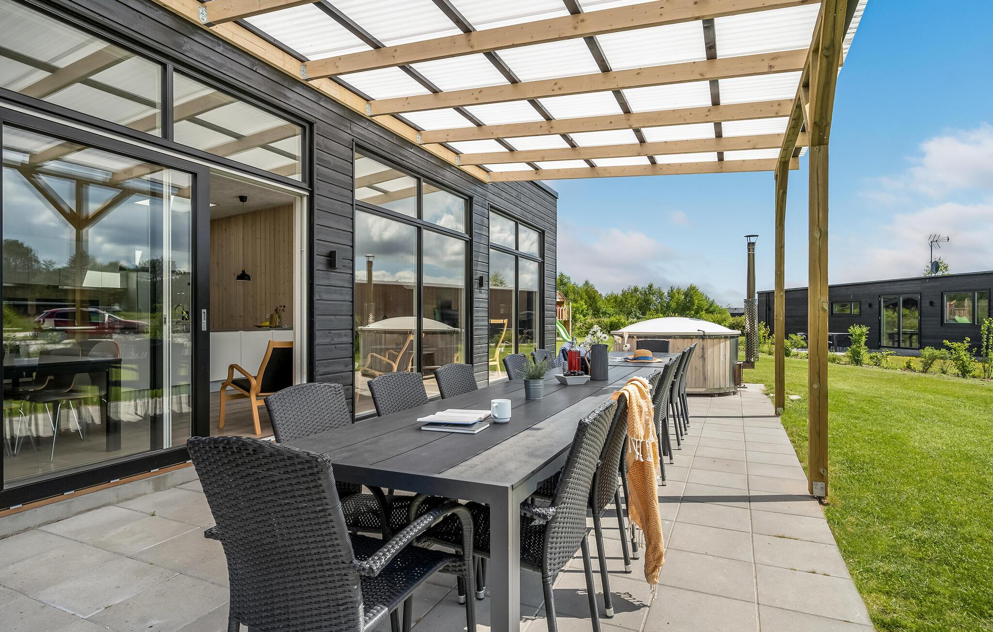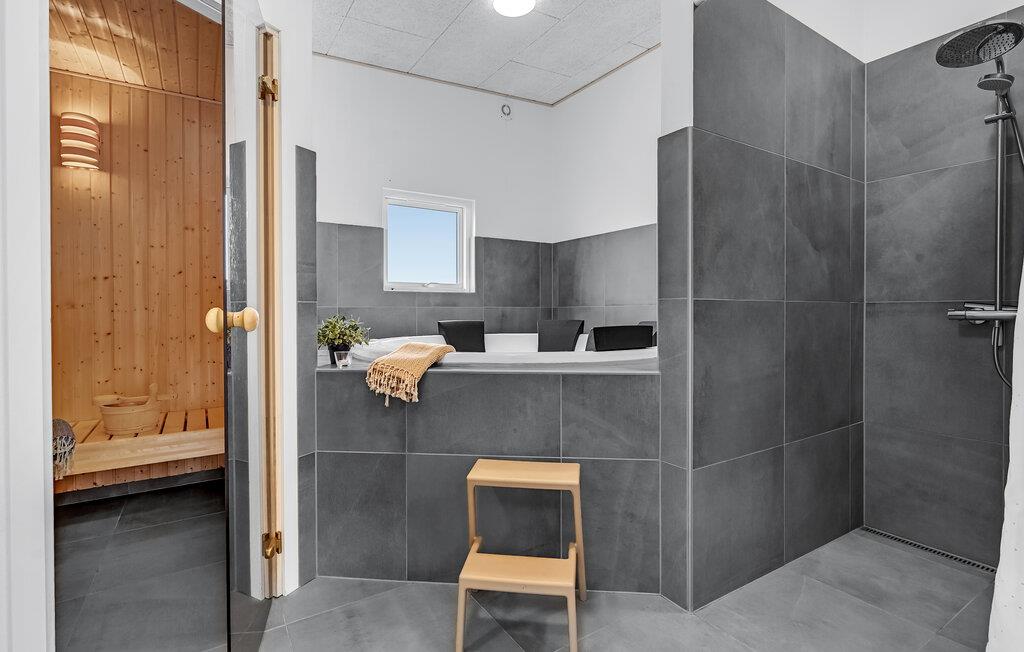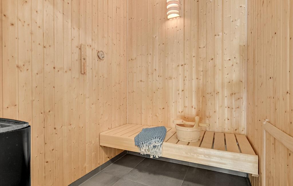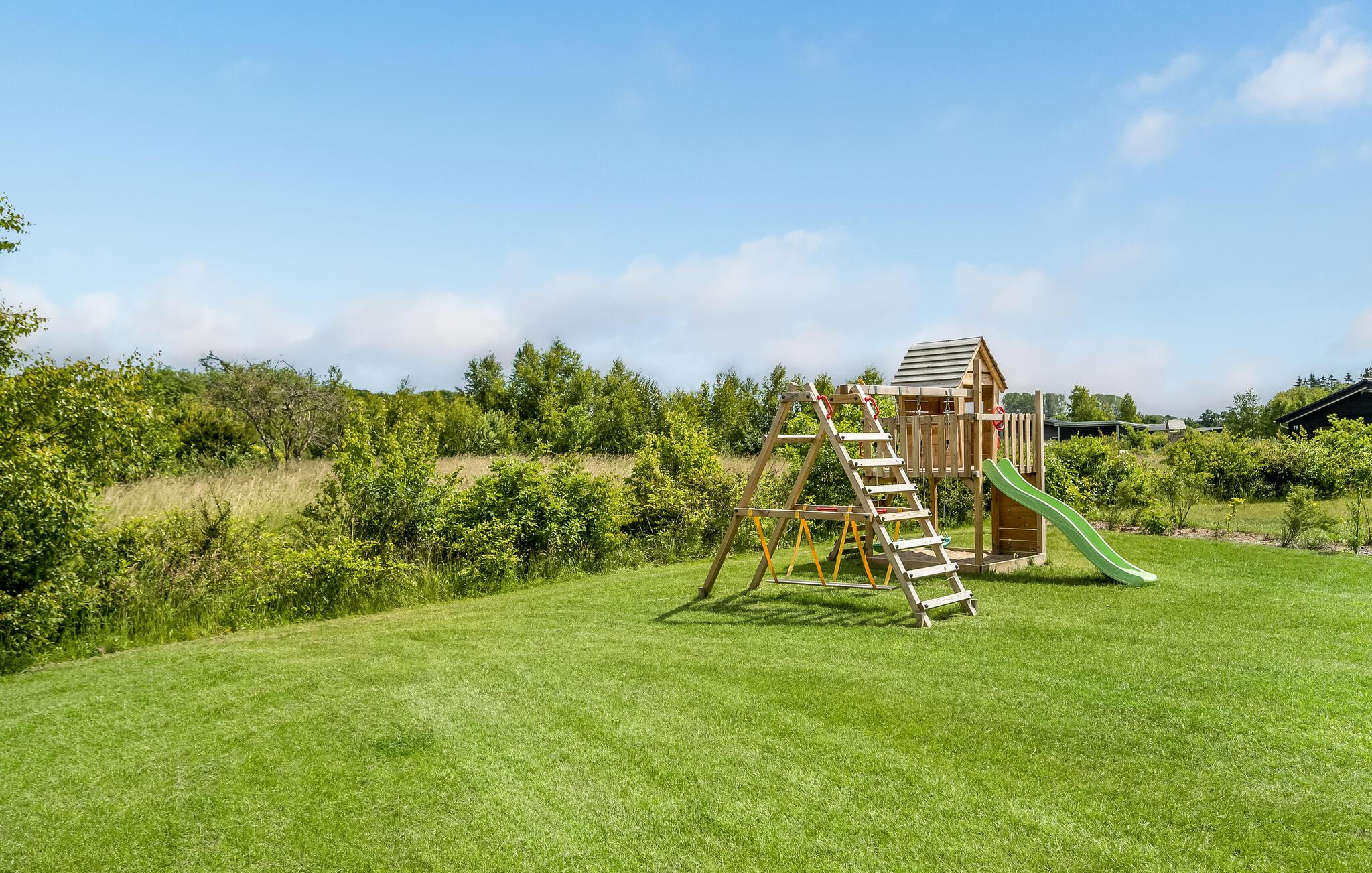 Den store naturgrund tilbyder også gode aktivitetsmuligheder med gynge og legetårn. I mellemtiden kan I slappe af på terrassen med havemøbler eller afslutte dagen her med en kølig drink. Takket være saunaen og indendørs og udendørs spabad har I jeres egne wellness-faciliteter på stedet og kan slappe af og glemme hverdagen.