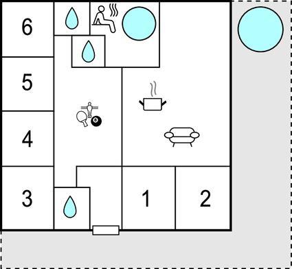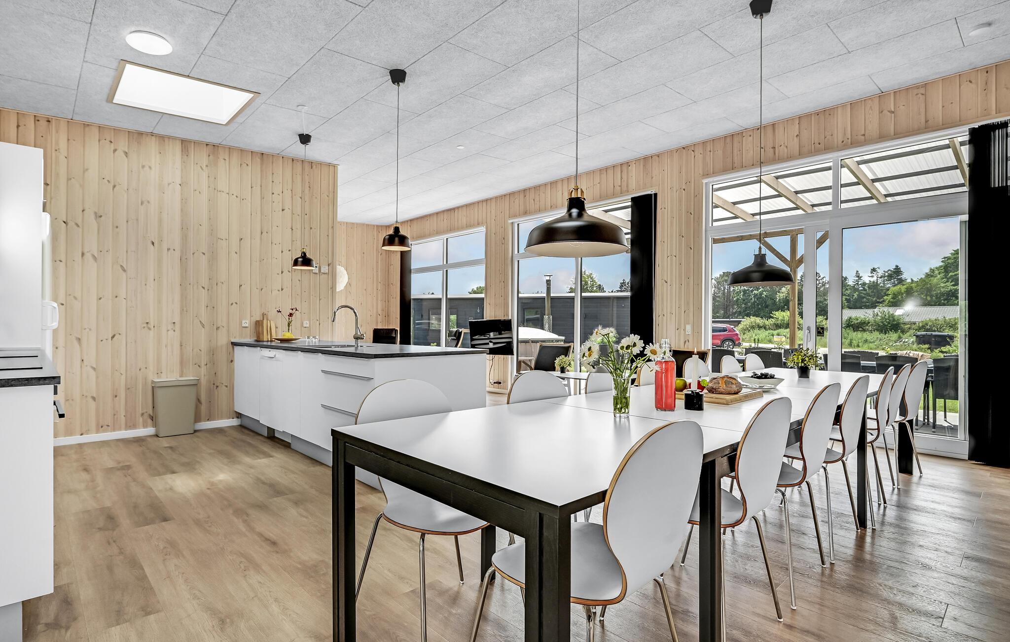 Dette store og komfortable feriehus tilbyder ideelle betingelser for en afslappende ferie med mange gæster. Huset kan rumme 16 personer i 6 store soveværelser. Op til to kæledyr er også velkomne. Husets hjerte er det åbne køkken med et langt spisebord og udsigt over haven, hvor I kan nyde feriens måltider sammen. Den smukke stue er også placeret her. Takket være aktivitetsområdet bliver det garanteret ikke kedeligt, her kan I blandt andet konkurrere i billard. Hele huset er udstyret med gulvvarme for ekstra komfort på køligere dage.
