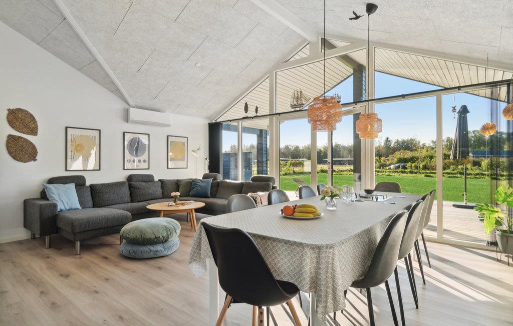Der venter jer nogle fantastiske feriedage i dette indbydende hus, som ligger i gåafstand fra kysten på Djurslands nordside. Her kan I tilbringe nogle herlige dage i det østjyske og køre et fuldt program - godt afbrudt af pauser i denne flotte oase. De store gulv til loft-vinduer giver jer frit udsyn til de grønne omgivelser, og interiøret er holdt i lyse, rolige farver, så her kan man ikke undgå, at pulsen falder, og skuldrene sænkes.