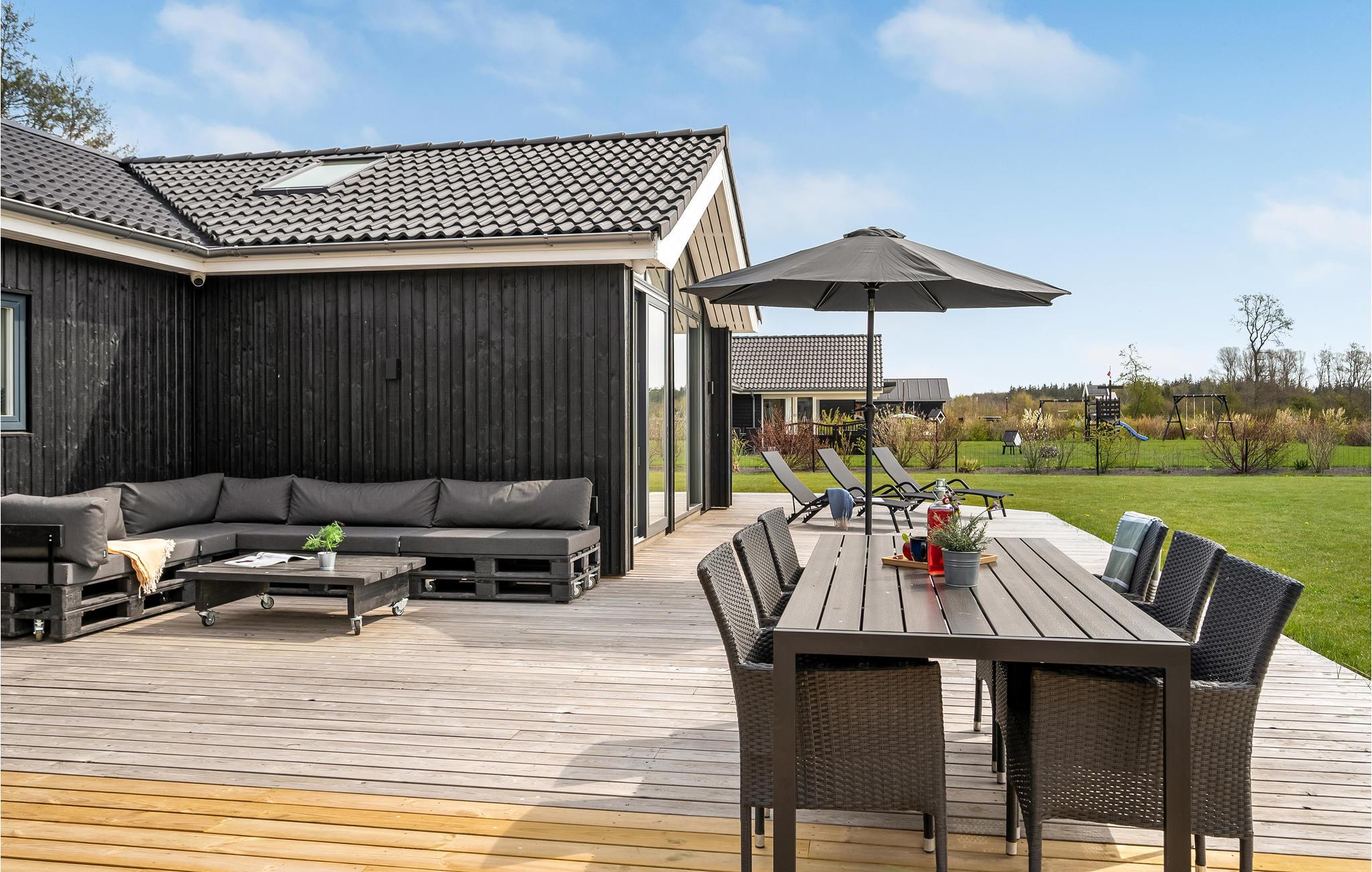 Flot og moderne hus med spa, sauna og vildmarksbad tæt ved skønne Fjellerup Strand.