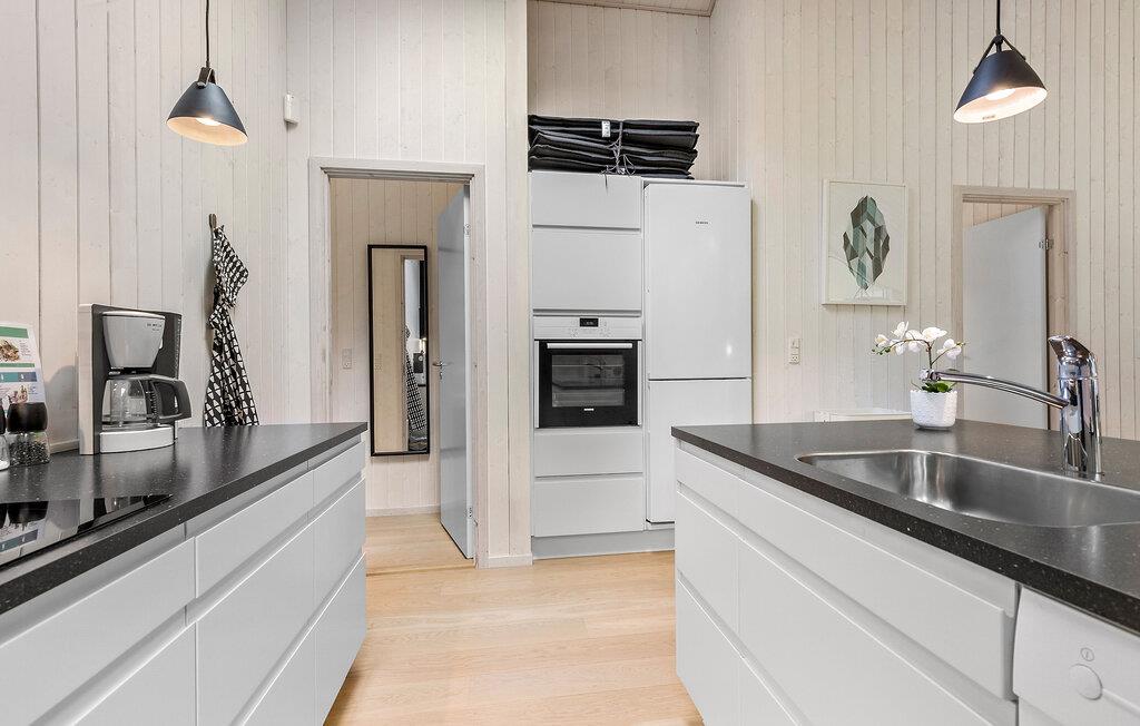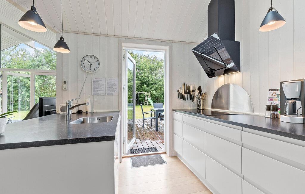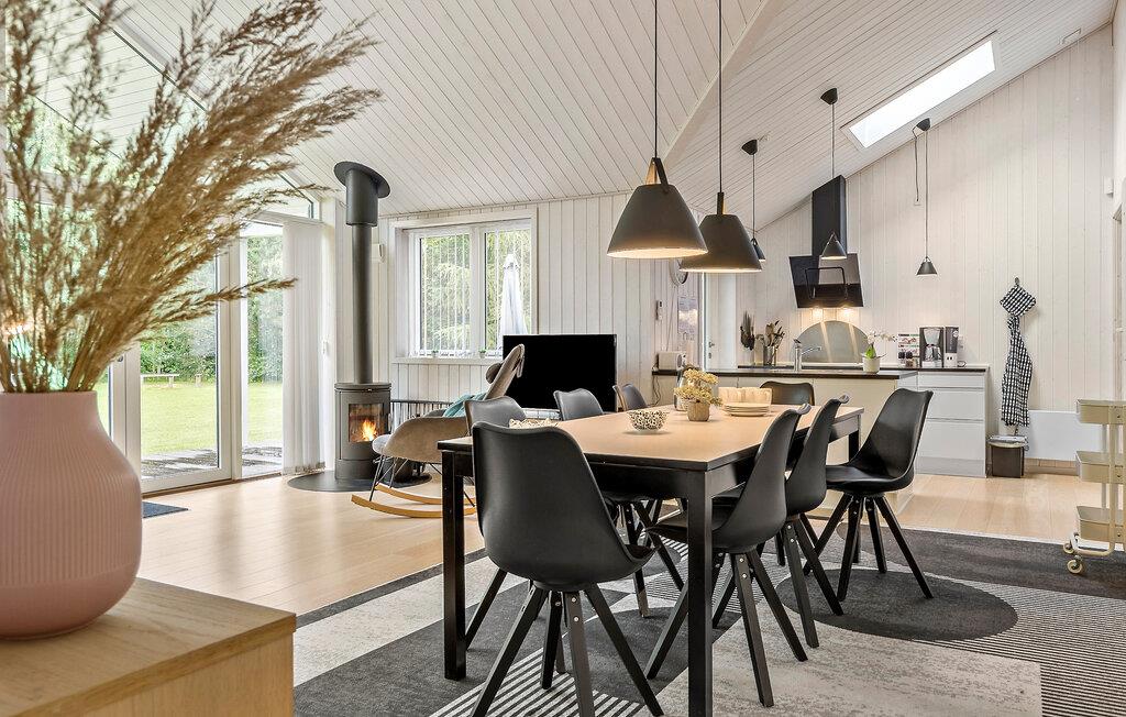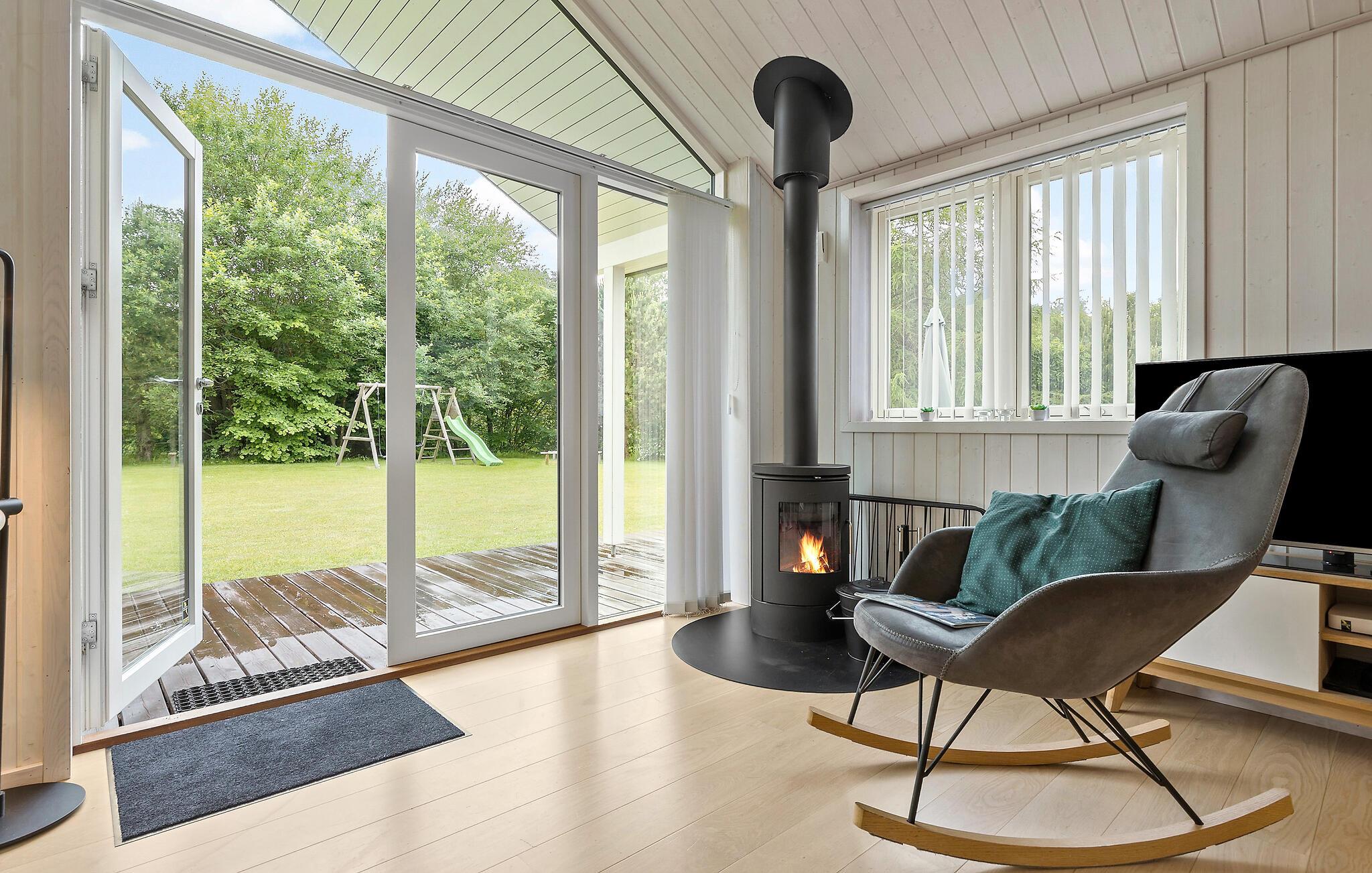 Tag familien under armen og rejs til Djursland, hvor I tæt på den nordlige kyst får base i dette attraktive hus på en stor og ugeneret grund. Huset er virkelig flot indrettet med højt til træloftet, åbent boligkoncept og store vinduespartier, der giver det indre et lyst og luftigt udtryk og en dejlig udsigt til haven. Hvis vejret viser lidt tænder, kan I tænde op i brændeovnen og nyde dens knitrende varme til madlavningen i køkkenet, der er moderne og fuldt udstyret. Efter aftensmaden kan I sætte jer godt til rette i sofaen med snacks og en god film på tv'et, hvis ikke I da hellere vil forkæle jer med lidt lækker wellness i spabadet eller saunaen?