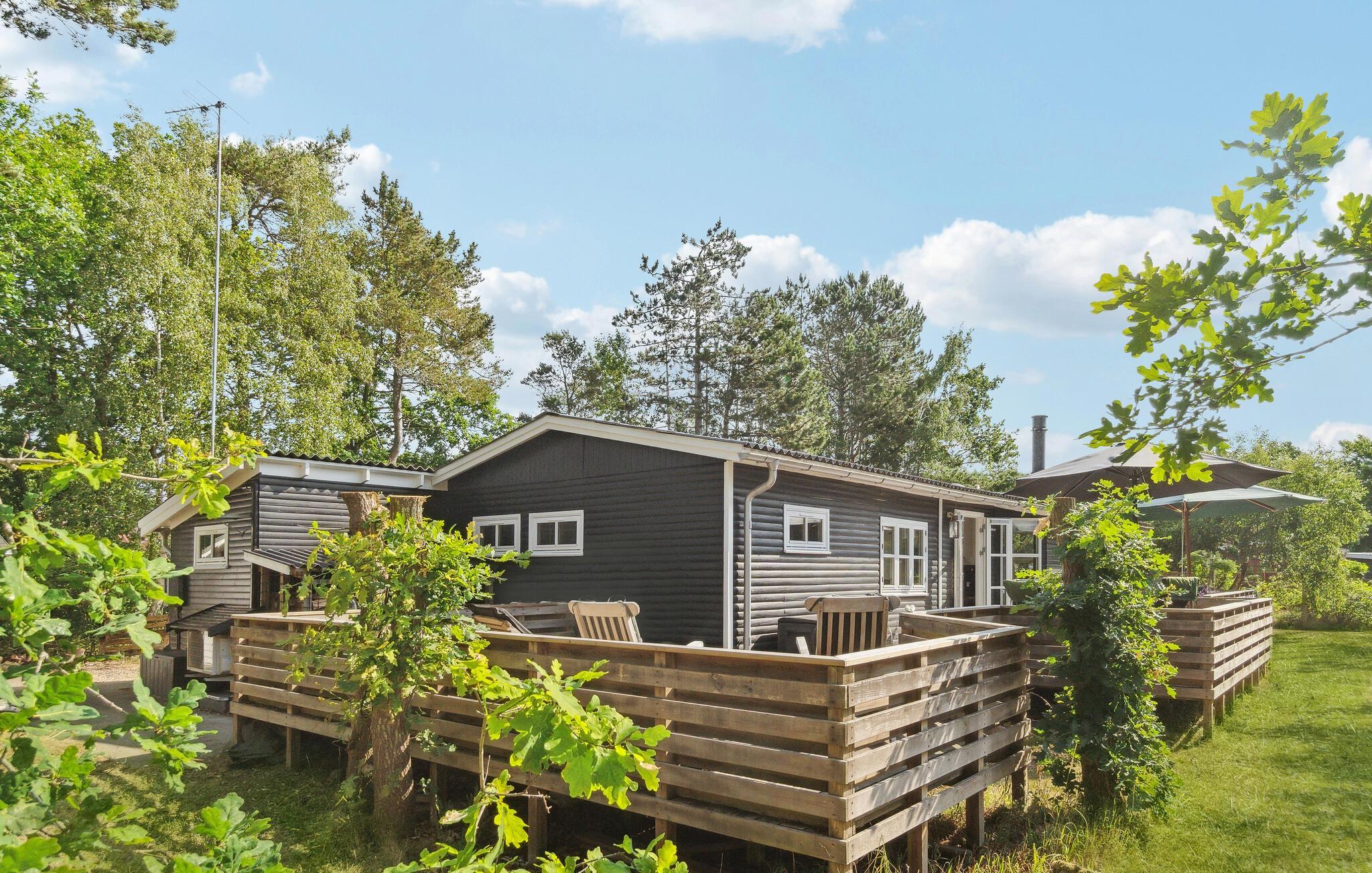 Hyggeligt sommerhus tæt på sandstrand med brændeovn, åben terrasse og moderne køkken i Fjellerup.