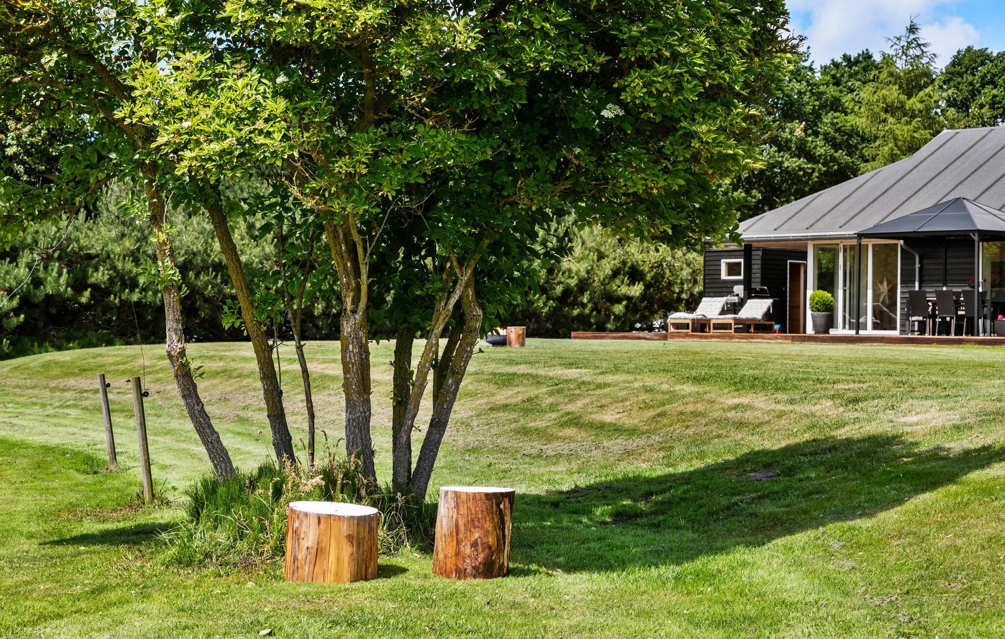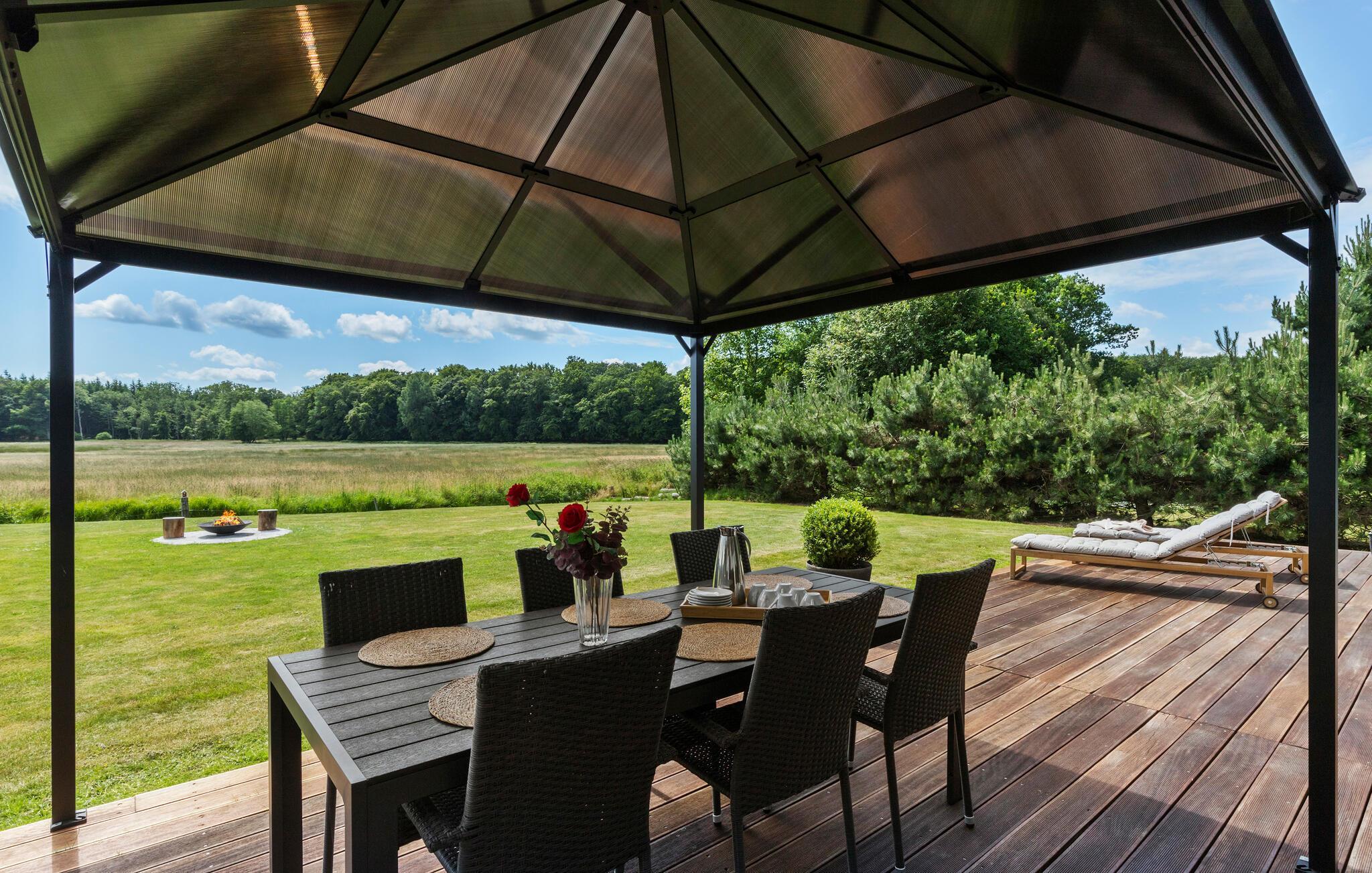 Gå udenfor og fyld lungerne med den friske landluft. Brug den overdækkede pavillon til hyggelige udendørsmåltider eller slap af på terrassen med komfortable liggestole. Slap af i den udendørs sauna og forkæl jer selv med beroligende varme med udsigt over naturen. Den store grund byder også på masser af plads til hvile og afslapning.