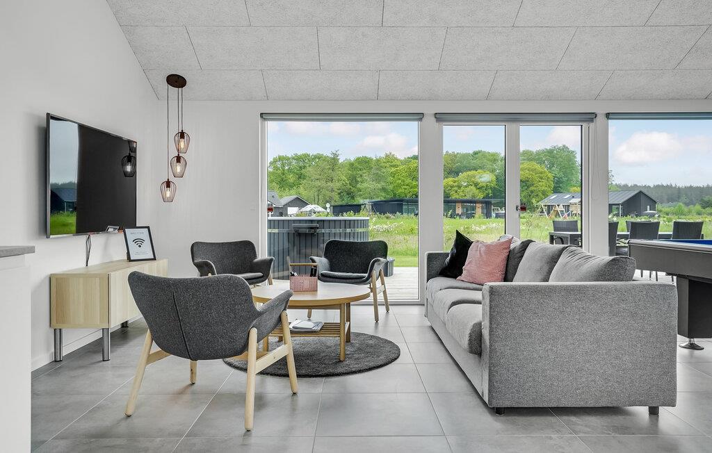Feriehuset venter sine gæster i Fjellerup Strand i gåafstand fra havet. Her er plads til op til 14 personer, der kan tilbringe en vidunderlig ferie med alle bekvemmeligheder og mange underholdningsmuligheder. Gulv til loft-vinduerne slipper meget lys ind i huset, og der er gulvvarme overalt.