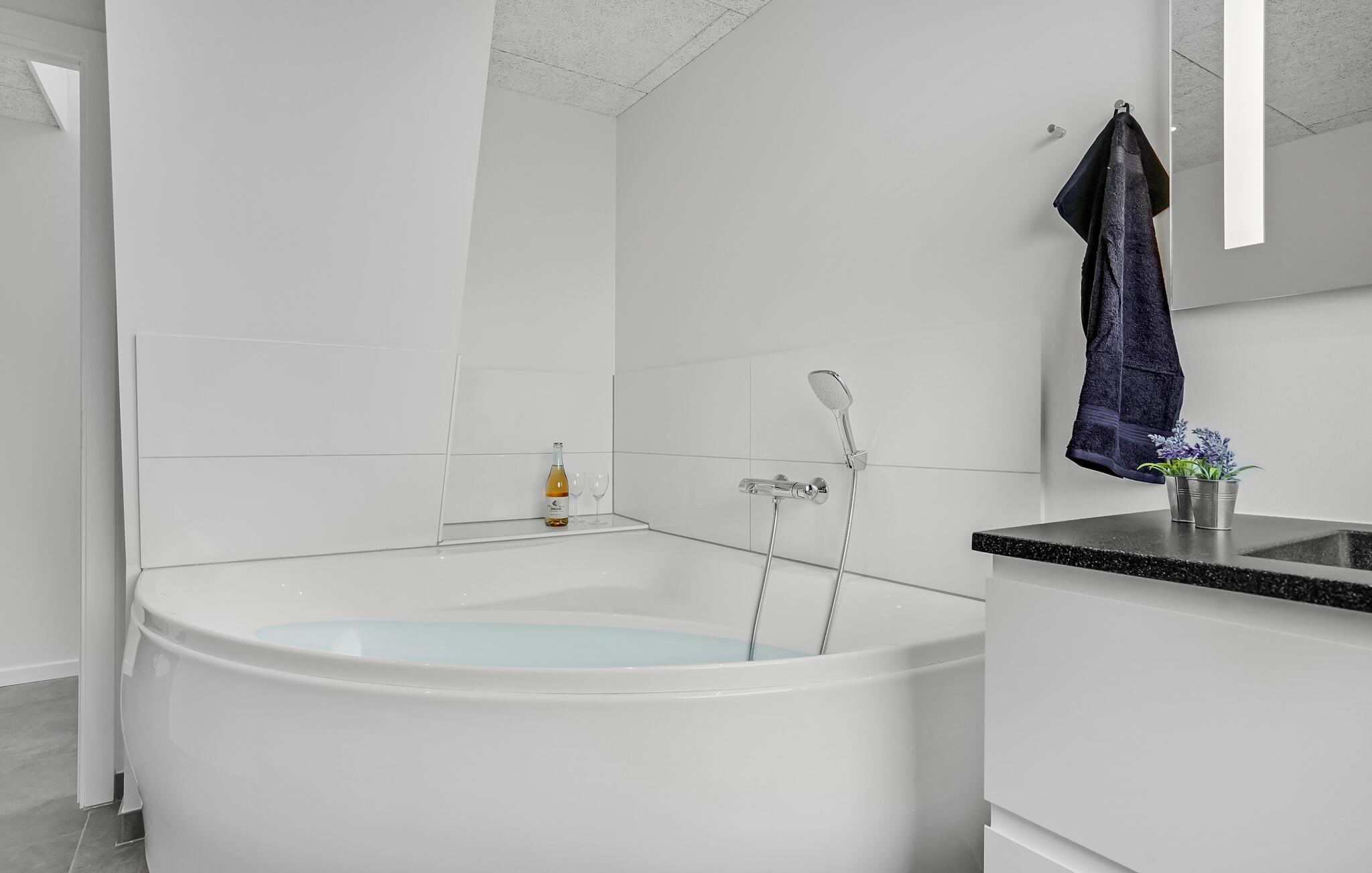 På husets to terrasser kan I vælge mellem solrige og skyggefulde steder og nyde friluftslivet fuldt ud. Tag et afslappende bad i spabadet med en smuk udsigt over haven.