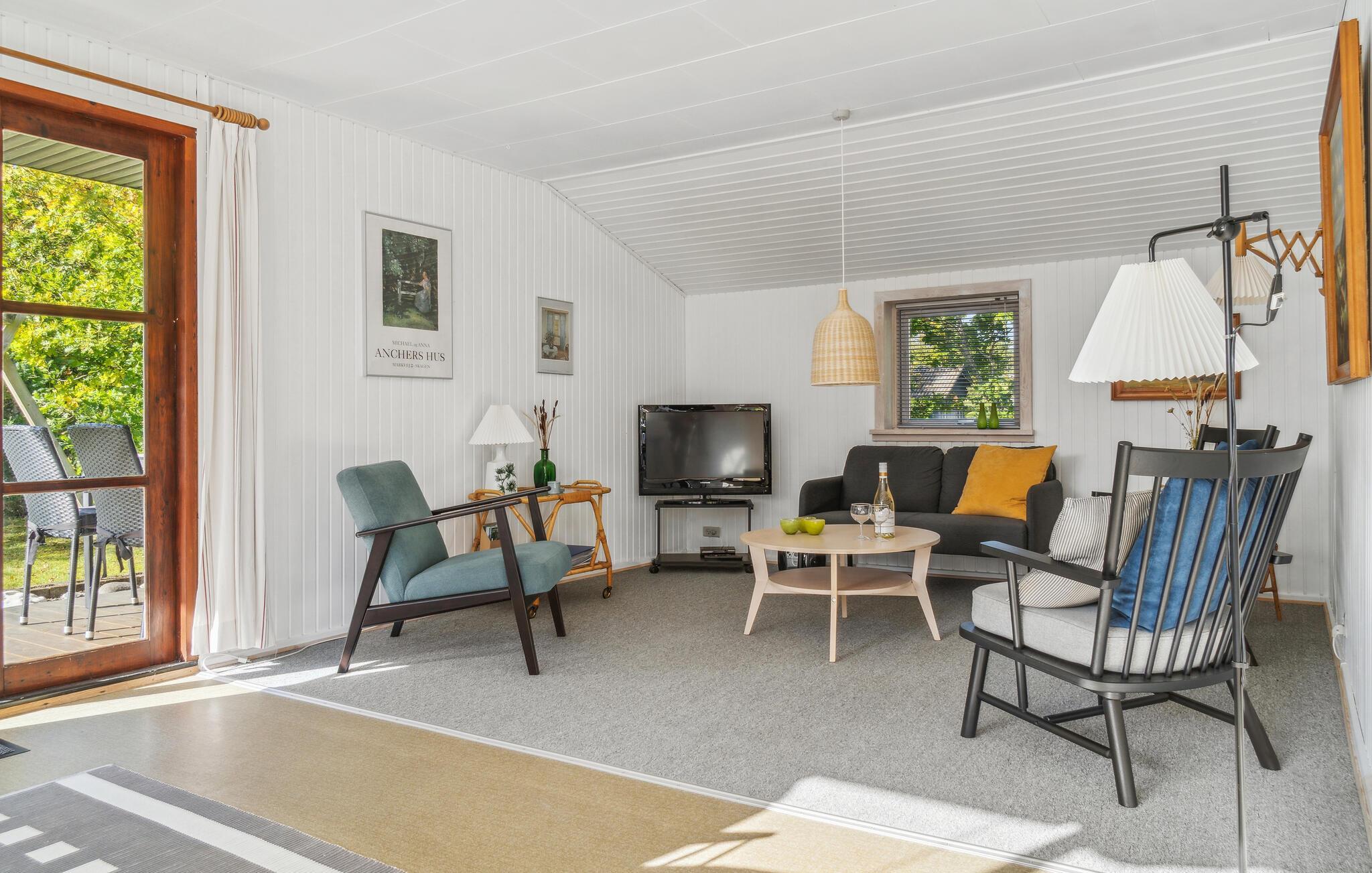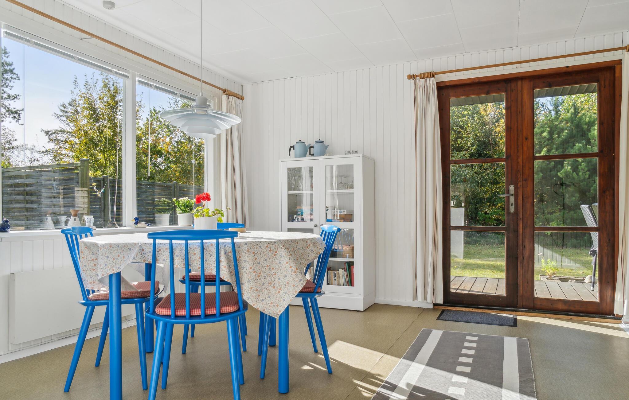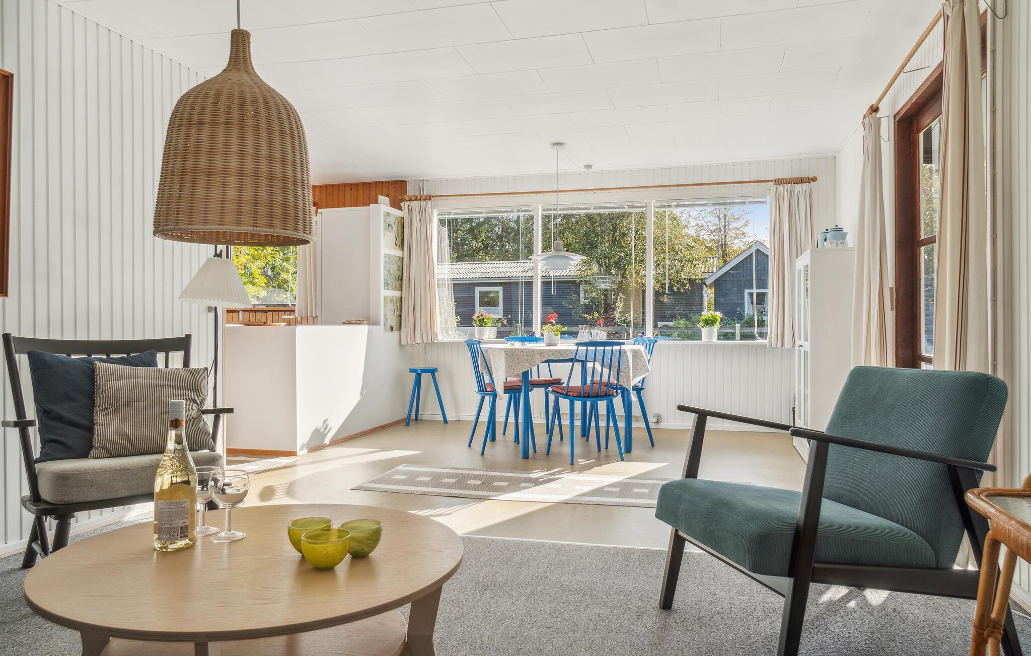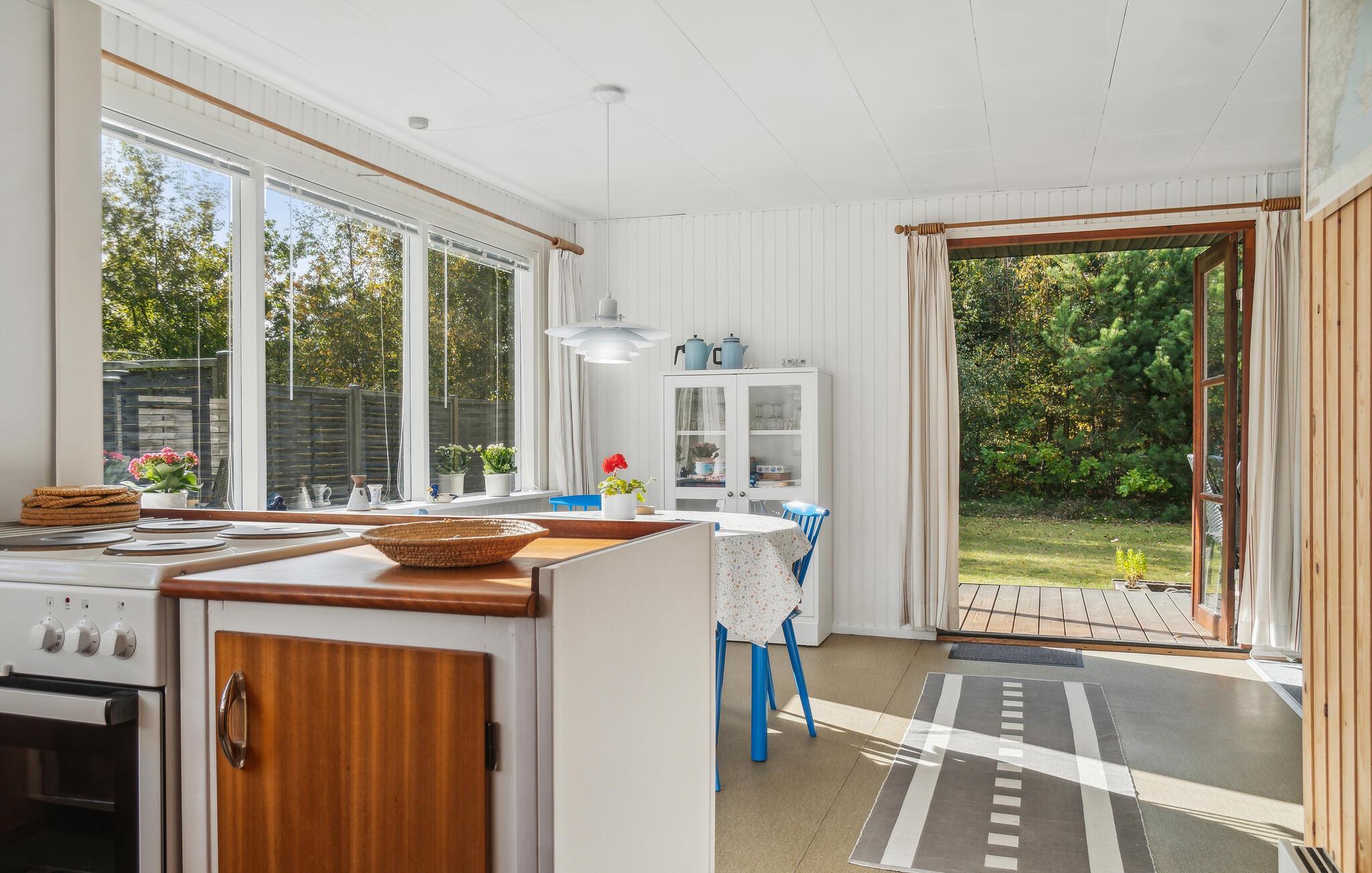 Der er lagt op til en afslappende ferie i rolige omgivelser, hvor I kan få jeres base i dette hyggelige sommerhus. Huset er klassisk indrettet med fine autentiske detaljer, som gør opholdet ekstra hyggeligt. Efter dagens oplevelser kan I samles i køkkenet og stuens åbne fællesareal, der lyses op af det store vinduesparti. Her kan I sammensætte feriens skønne måltider i køkkenet, mens andre finder sig behageligt til rette i sofaen med en god bog.