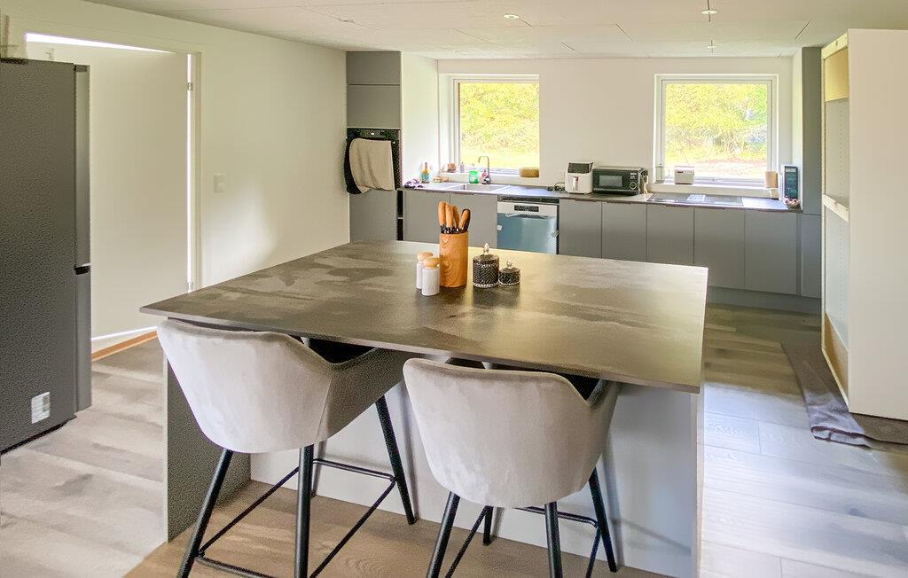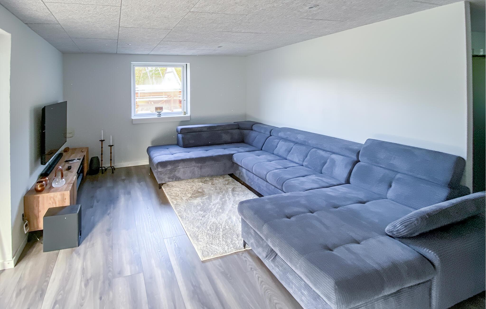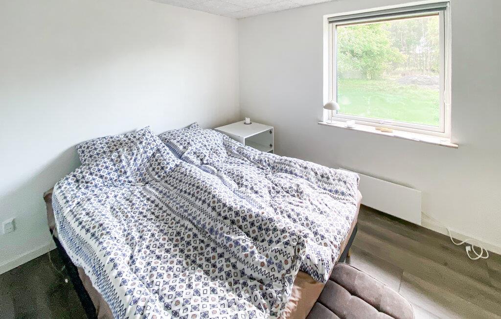 I dette feriehus bor I i rolige omgivelser, kun få minutter fra strand, skov og kyst. Den åbne opholdsstue imponerer med store vinduer, der lukker masser af lys ind og giver udsigt til det grønne. Hyg jer sammen i sofahjørnet, og nyd fælles aftener foran fjernsynet eller med et spændende spil. Køkkenet er praktisk indrettet og giver plads til, at I kan lave mad og spise sammen. Ved spisebordet kan I afslutte dagen med et godt måltid i en behagelig atmosfære.