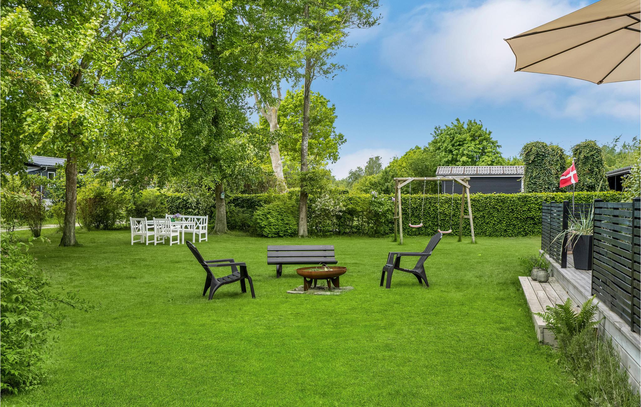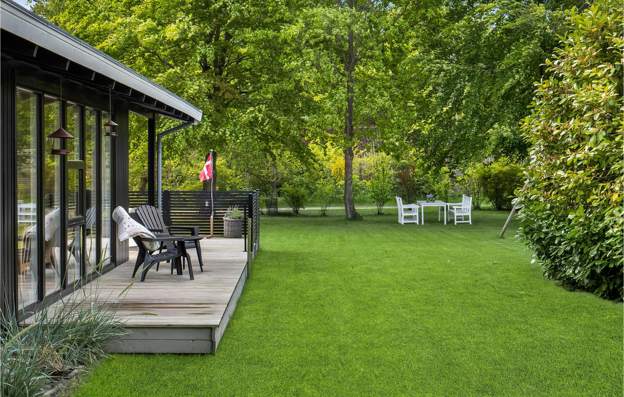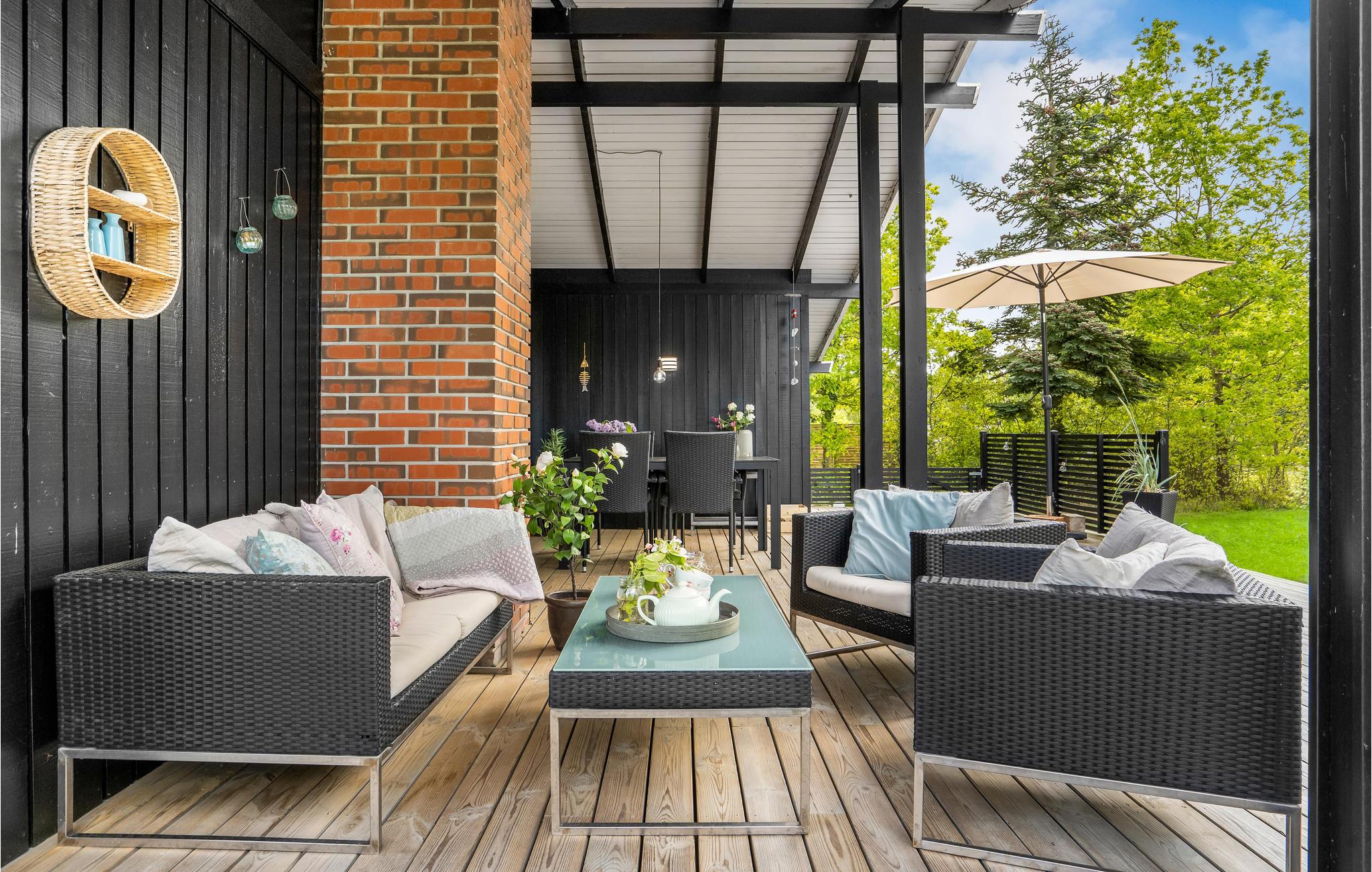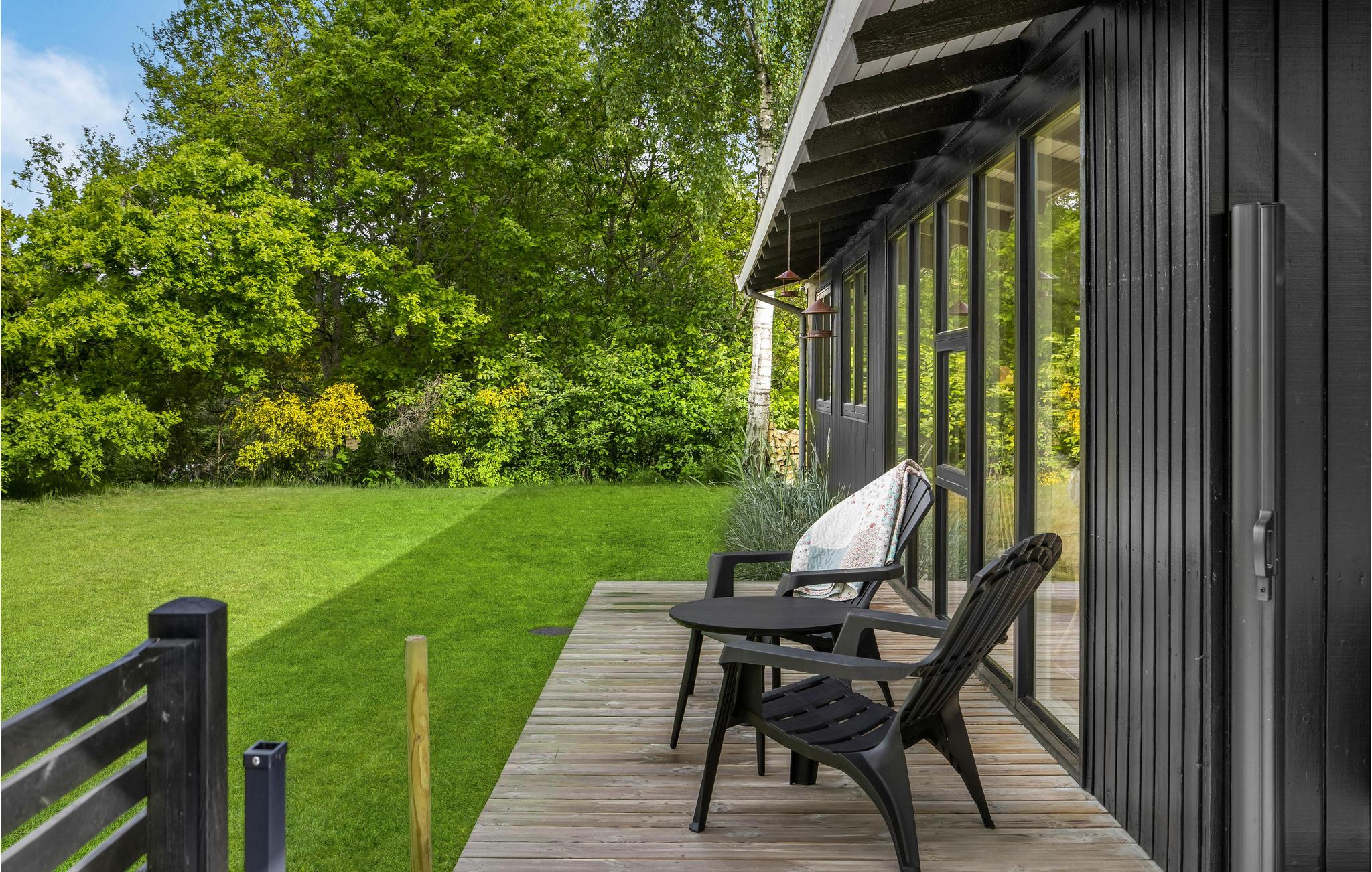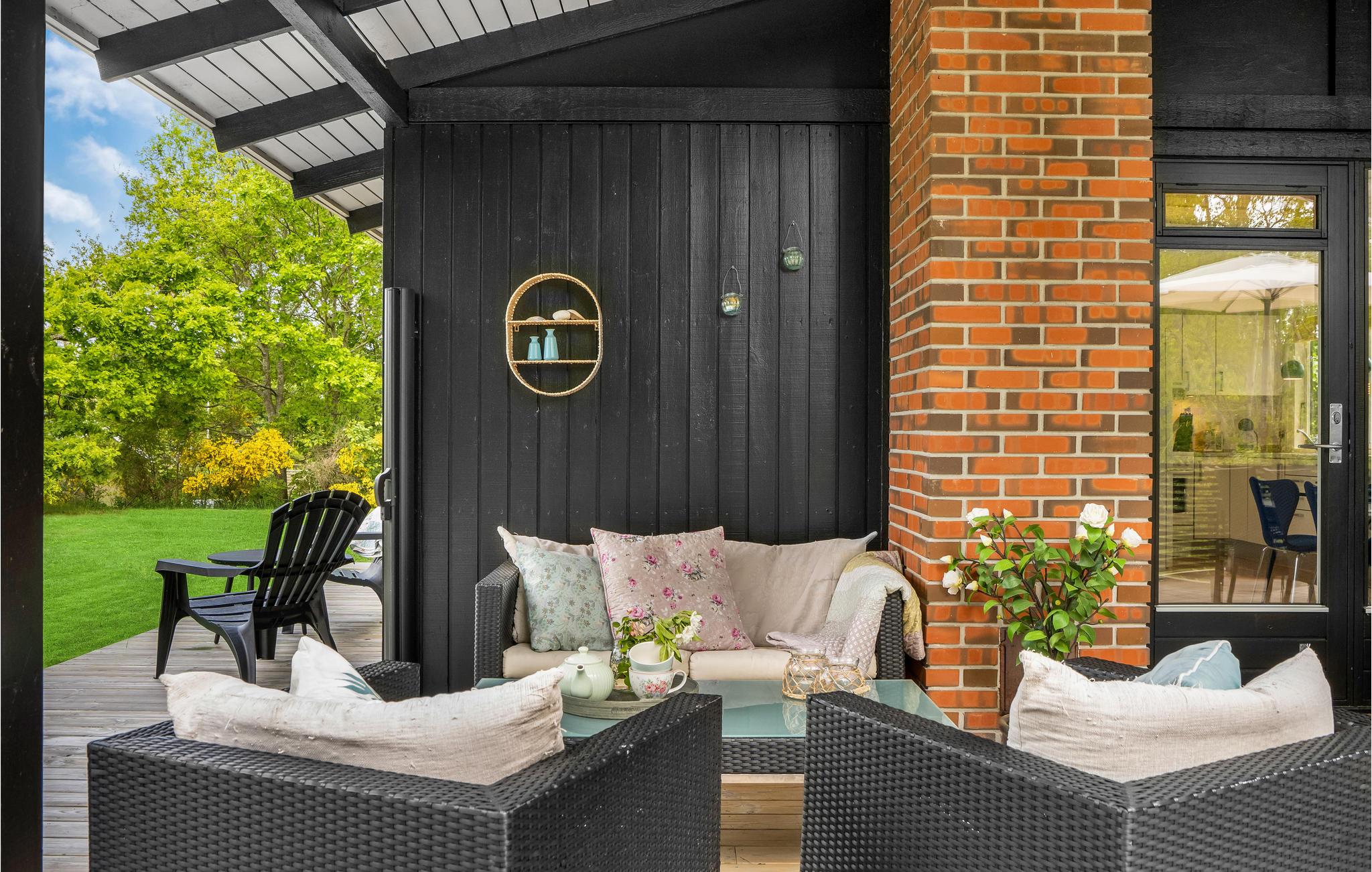 Når solen skinner, kan I finde en dejlig plet på terrassen og læne jer tilbage i havemøblerne eller samles omkring dagens måltider, mens fuglene synger i trætoppene.