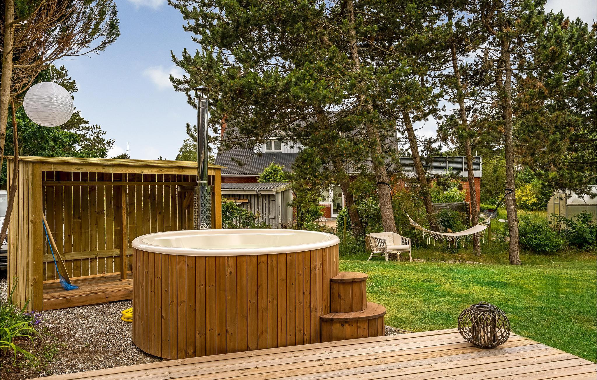Huset er rigtig hyggeligt og mange fine ting. Køkkenet er veludstyret og har masser af bestik og porcelæn. Der er et udendørs spabad (med afskærmning) til 6 personer og masser af havemøbler til rådighed, herunder hængekøje og solvogne.