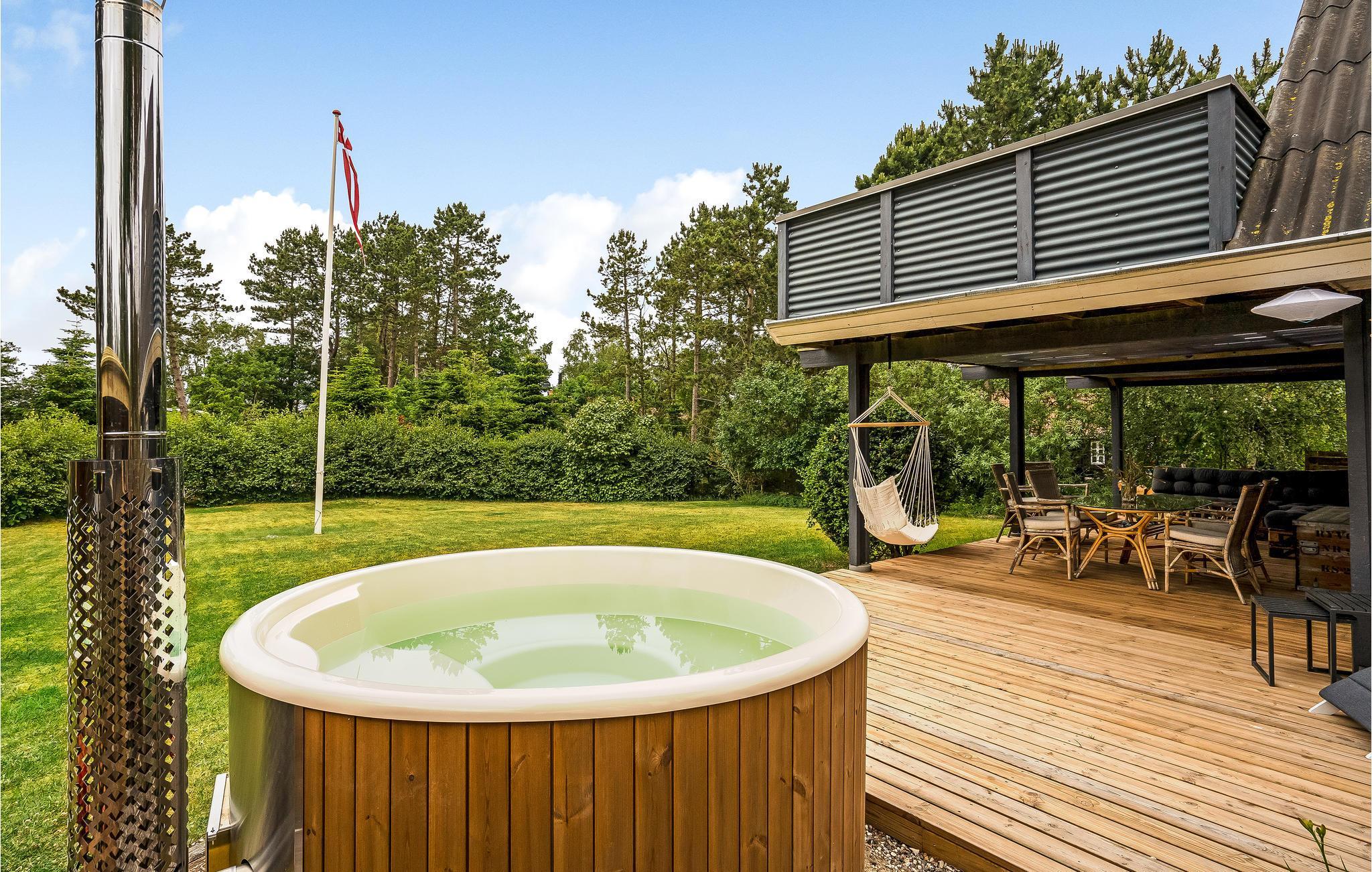Hyggeligt feriehus med spabad og havudsigt tæt på stranden i Fjellerup, perfekt til afslapning og naturoplevelser.