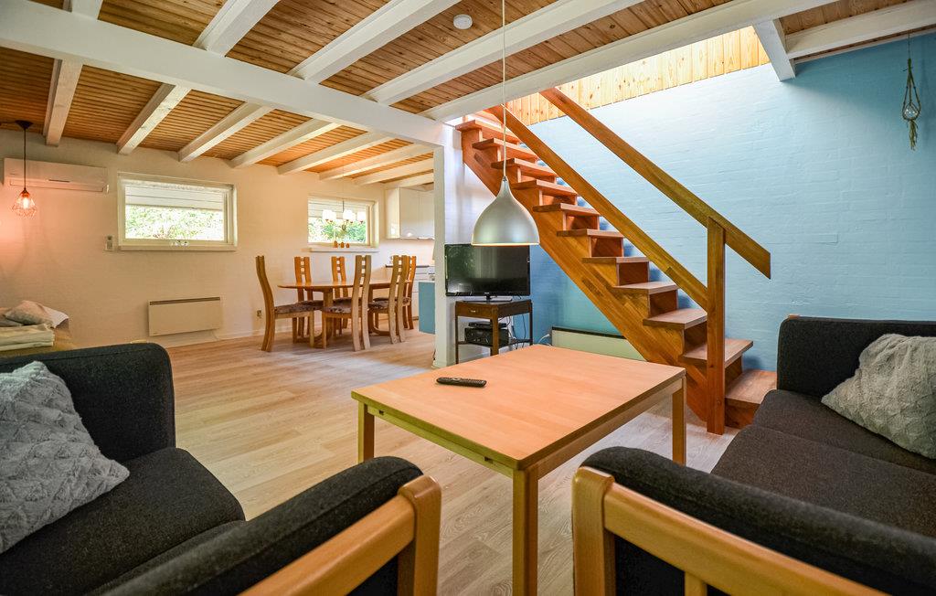 Der er lagt op til en skøn ferie på Norddjurs, hvor I finder dette indbydende feriehus, som ligger på en kuperet naturgrund. Huset er hyggeligt og komfortabelt indrettet med åbent køkken i stueetagen. Find sammen i spiseområdet til dagens måltider og læn jer godt tilbage i sofaerne. Sammensæt nogle lækre ferieretter i det lyse køkken, hvor der er gode rammer til at slå sig løs med hyggelige madprojekter.