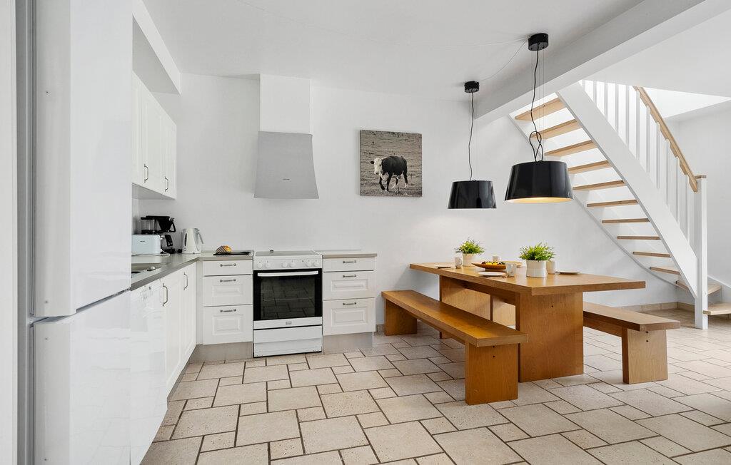 I denne ferielejlighed kan I tilbringe nogle dejlige dage omgivet af Djurslands dejlige, varierede natur. Sæt jer til rette i den behageligt møblerede opholdsstue med komfortable siddepladser og direkte adgang til terrassen. Nyd tiden sammen ved spisebordet eller tilbered jeres måltider i det smukke køkken, der tilbyder moderne apparater og rigelig arbejdsplads. Det lyse interiørdesign skaber en behagelig atmosfære, hvor I straks vil føle jer velkomne.
