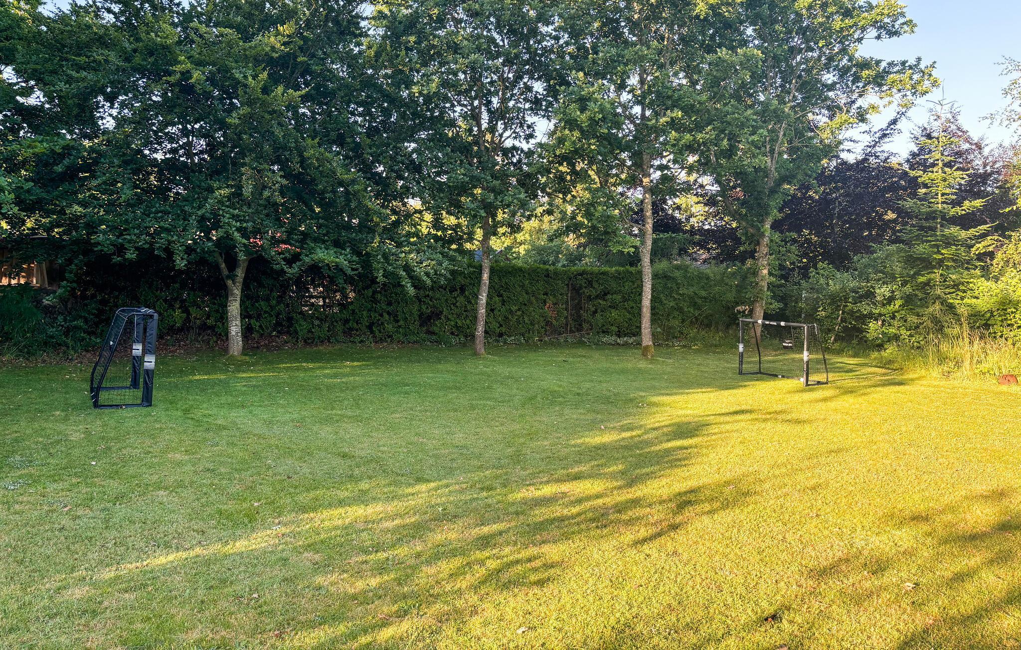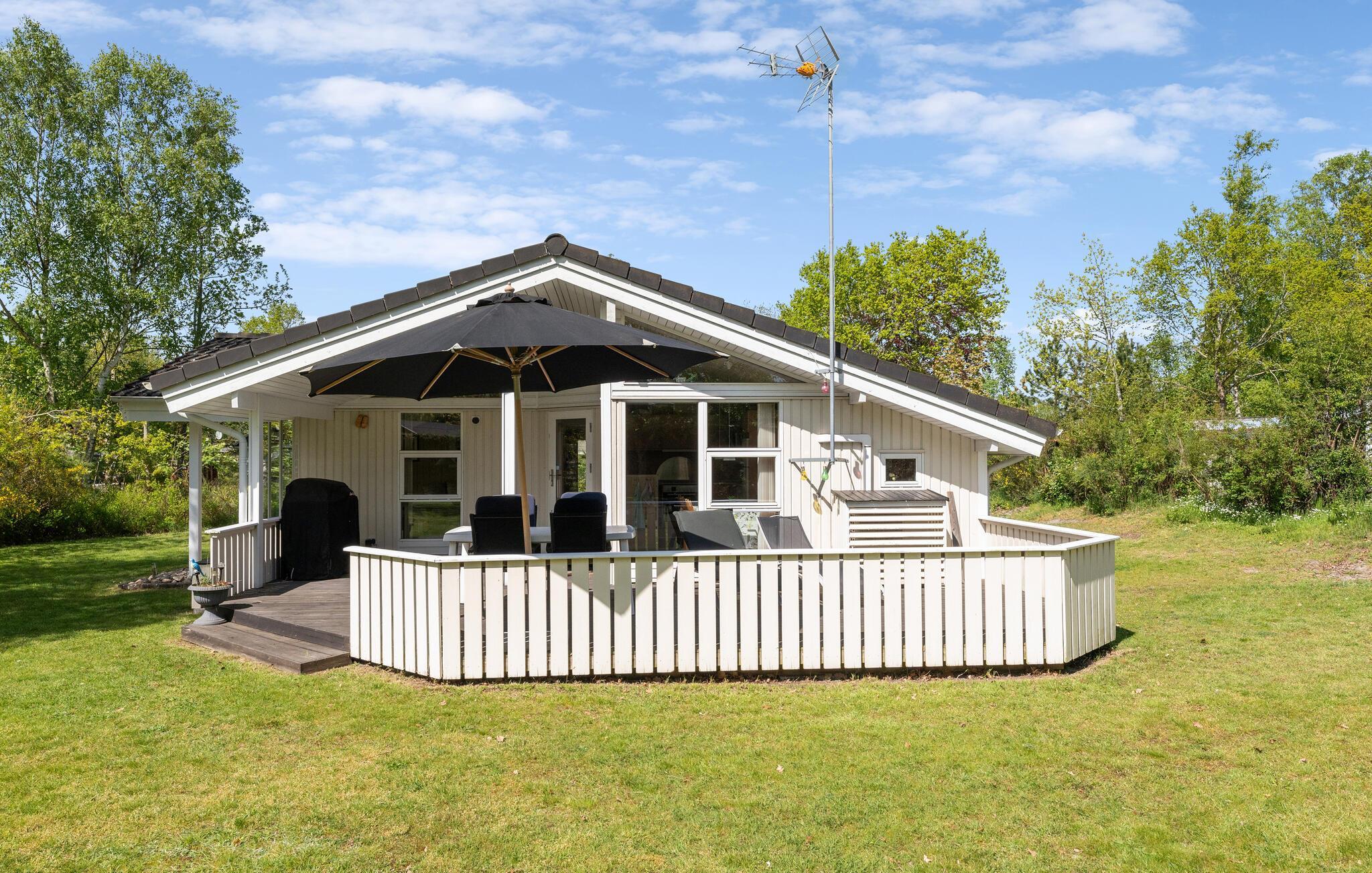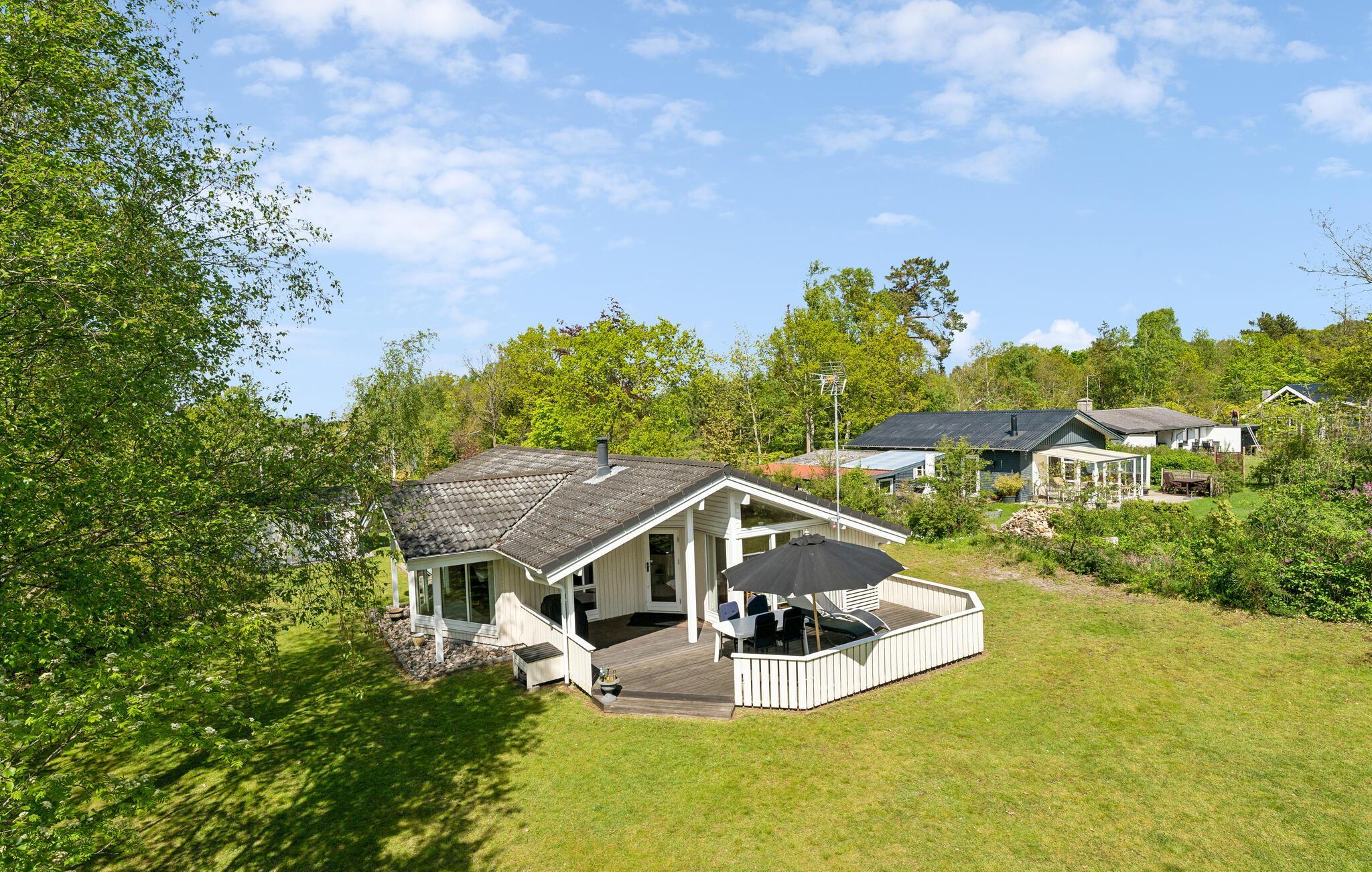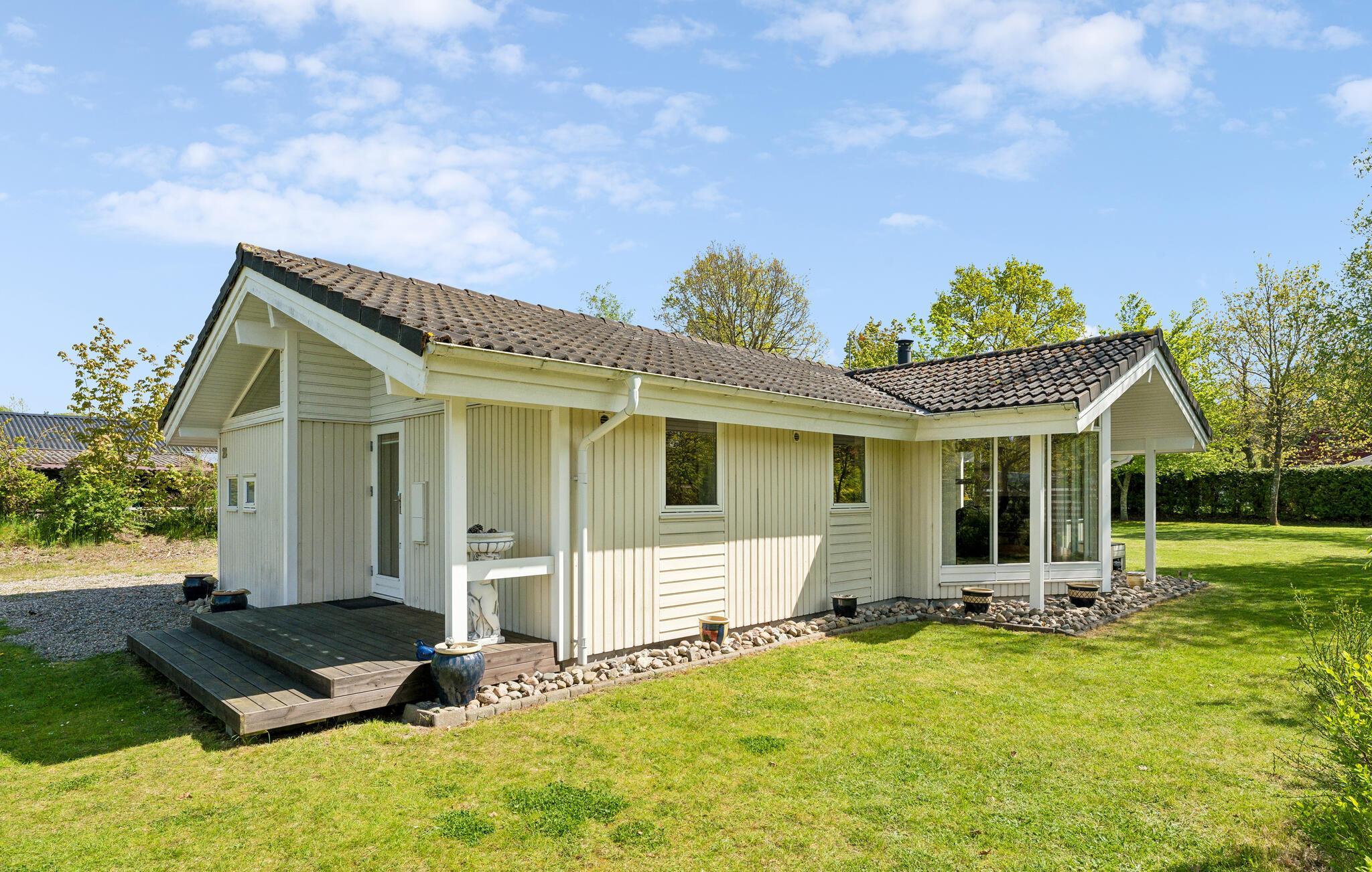 Hyggeligt feriehus ved Fjellerup Strand med sauna, spabad og stor have perfekt til afslapning og aktiviteter.