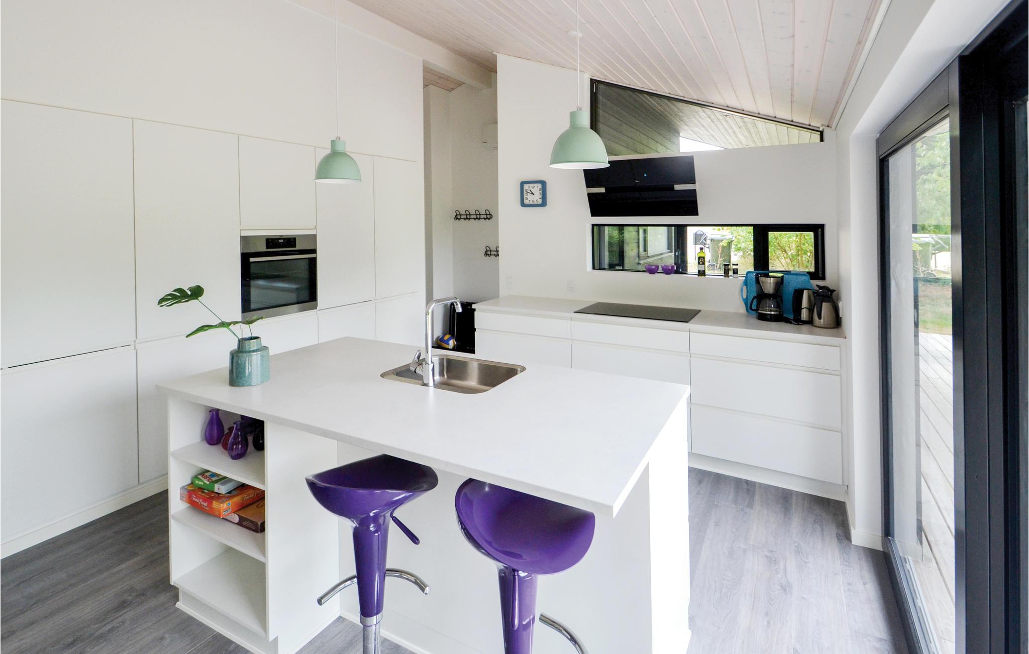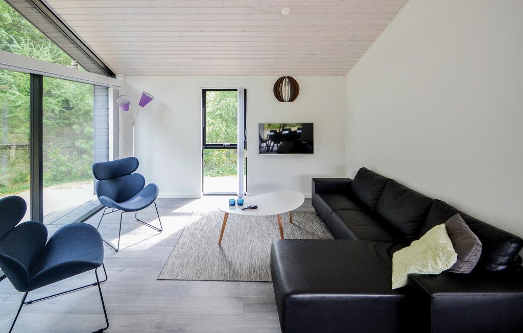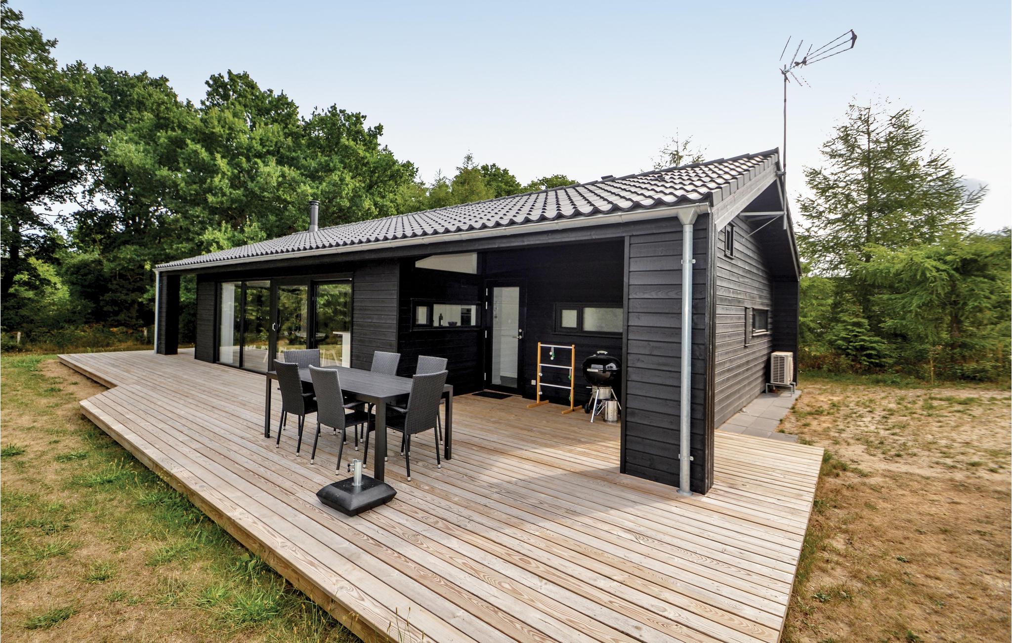 Nyd et moderne sommerhus i Fjellerup med stor terrasse og gåafstand til stranden.