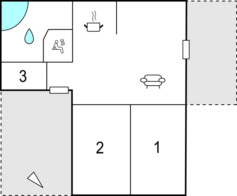 Badeværelse 12m2 (nr. 1) - WC. Varmt og koldt vand. Bruser