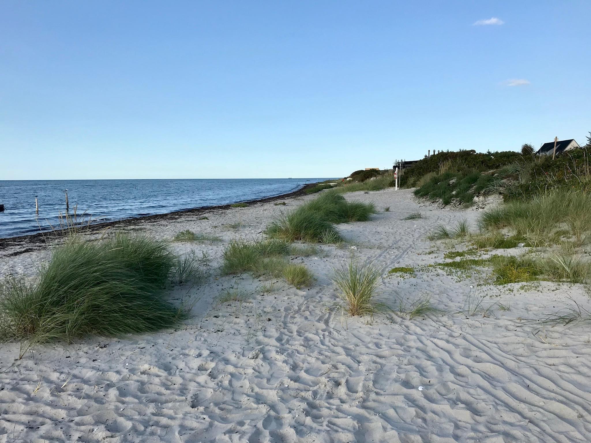 Den nærliggende strand er en rolig og børnevenlig sandstrand med små klitter og lav vanddybde. I området er der også gode cykelruter.