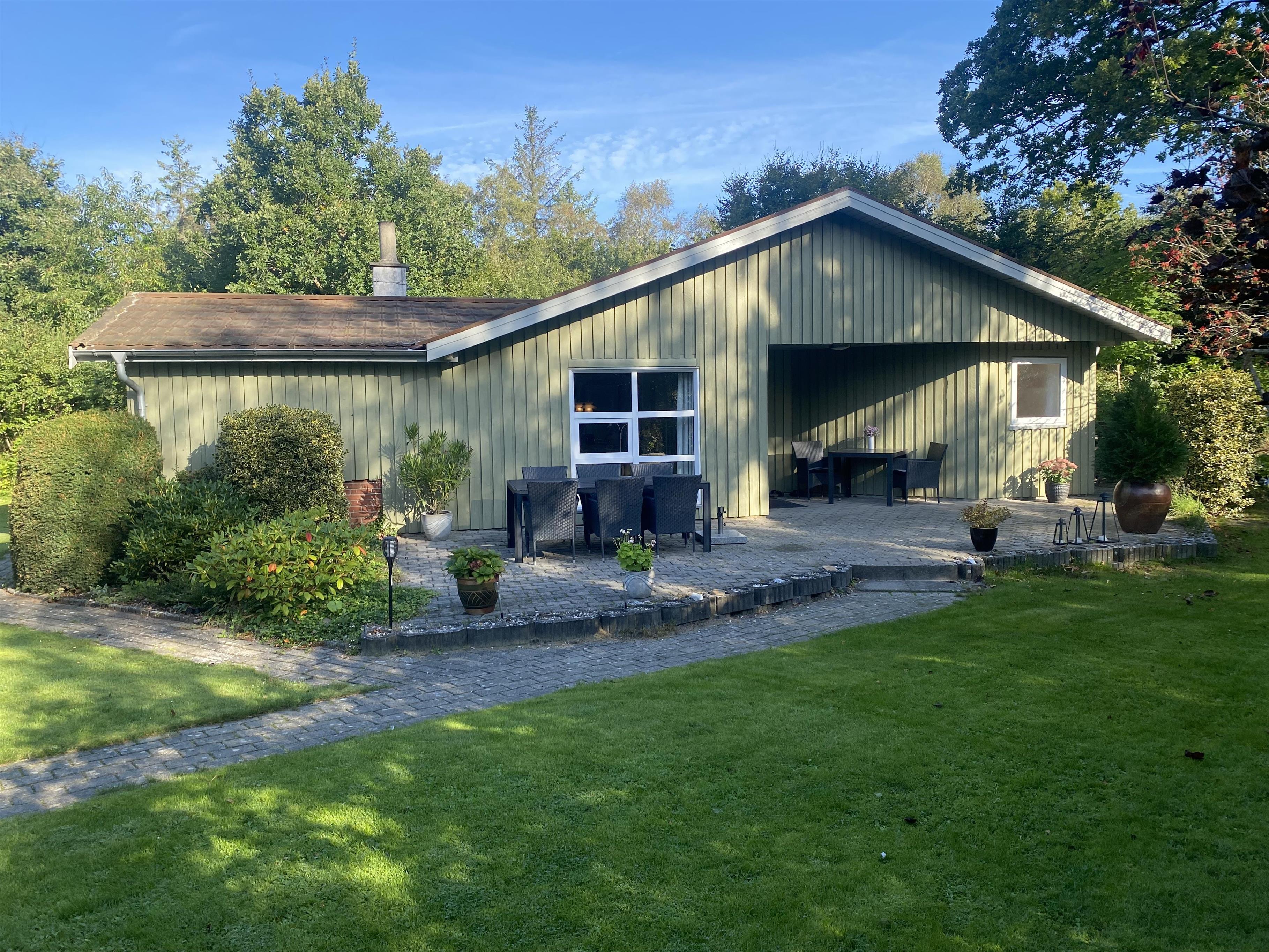 Dette velholdte og hyggelige sommerhus ligger i et skovområde i den østlige ende af skønne Fjellerup Strand på Norddjurs og har en dejlig, stor have med både gynger og sandkasse til børnene.