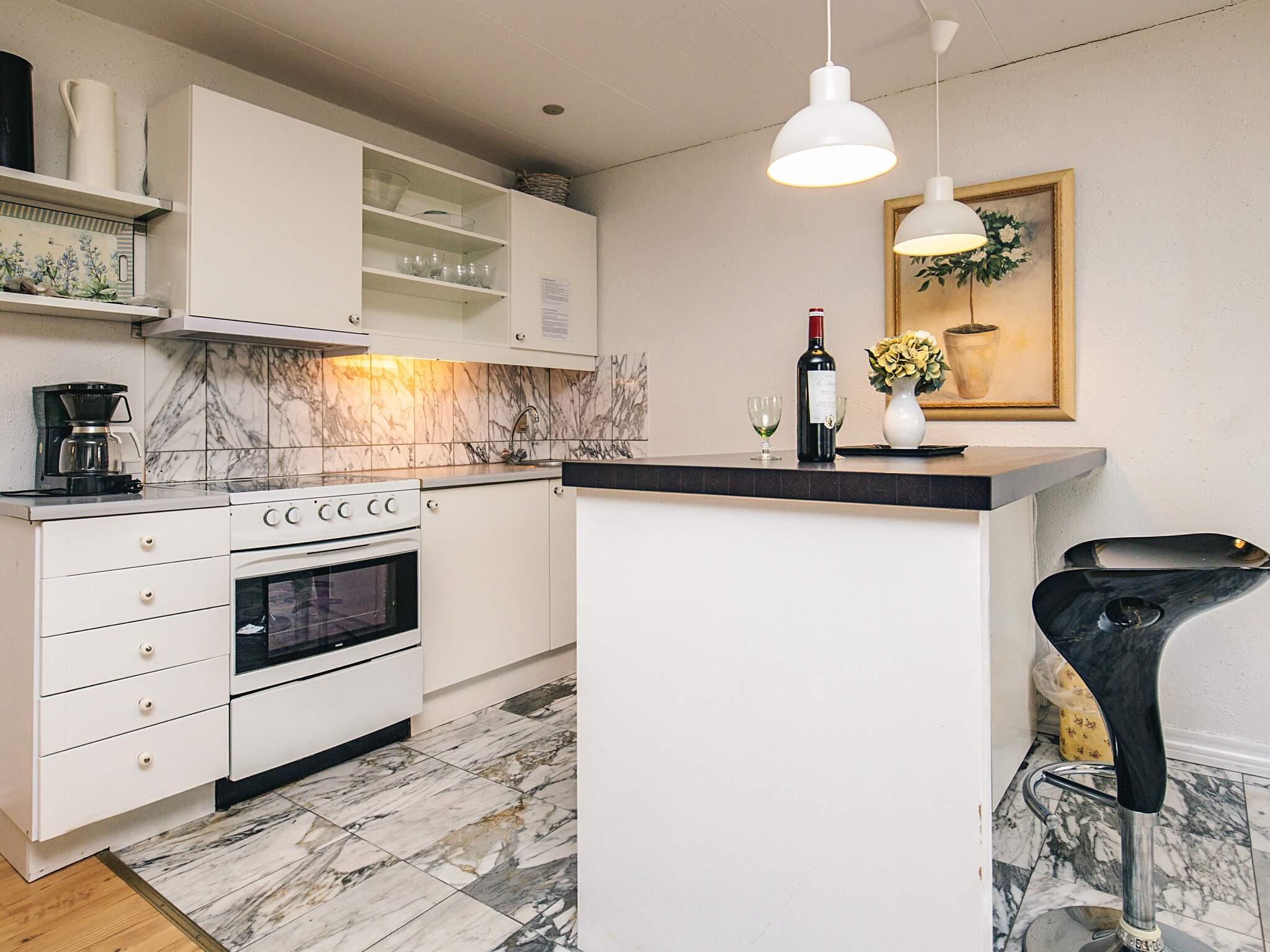 Køkken: El-komfur, køleskab m/frostboks, kaffemaskine